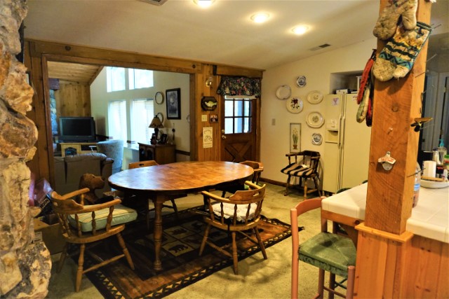 • Lots of mountain ambience with knotty pine interior, vaulted ceilings and huge native rock fireplace