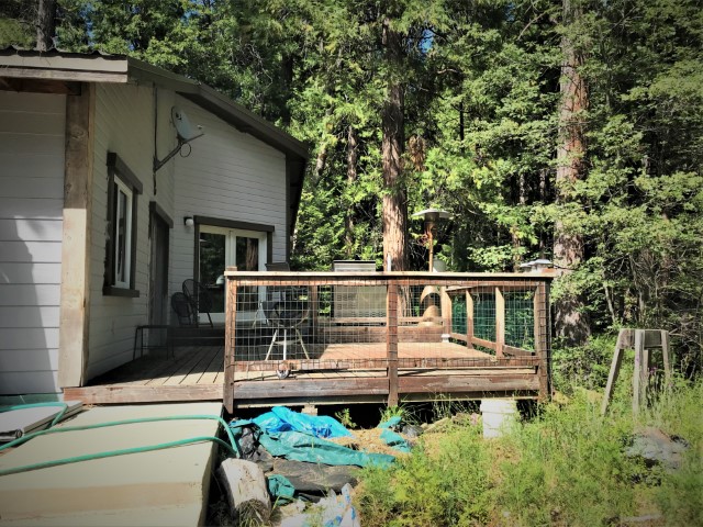 Adorable mountain home in a very desirable Sierra City location and setting.  Nice deck and enclosed patio room look out over peaceful wooded area. Interior is cozy and inviting with a native rock fireplace, knotty pine and vaulted ceilings.  Newer large bedroom addition has an additional gas insert fireplace, huge closets, storage, and sitting space. Framework and cement pad are in for an oversized garage including most materials ready for completion.