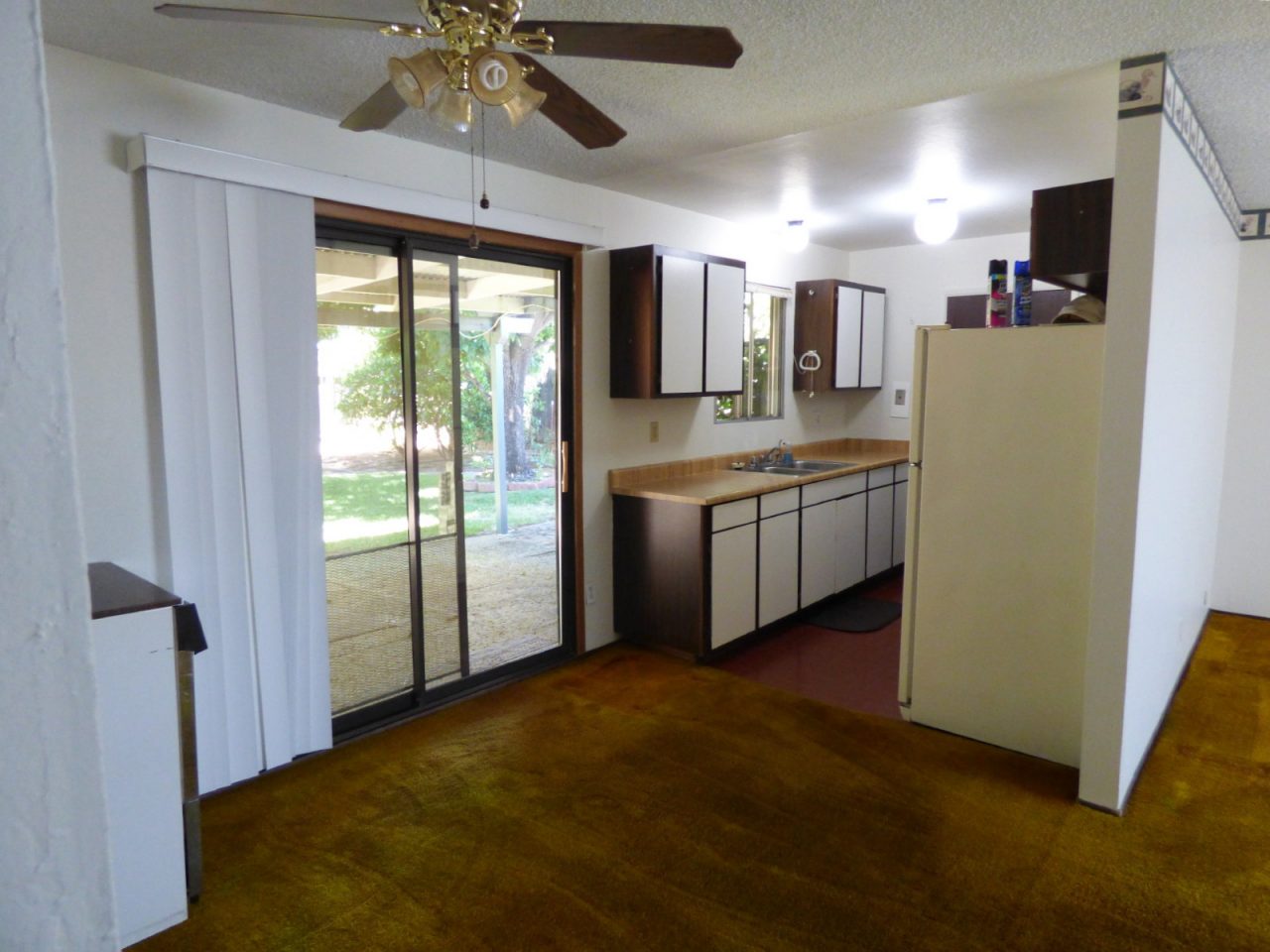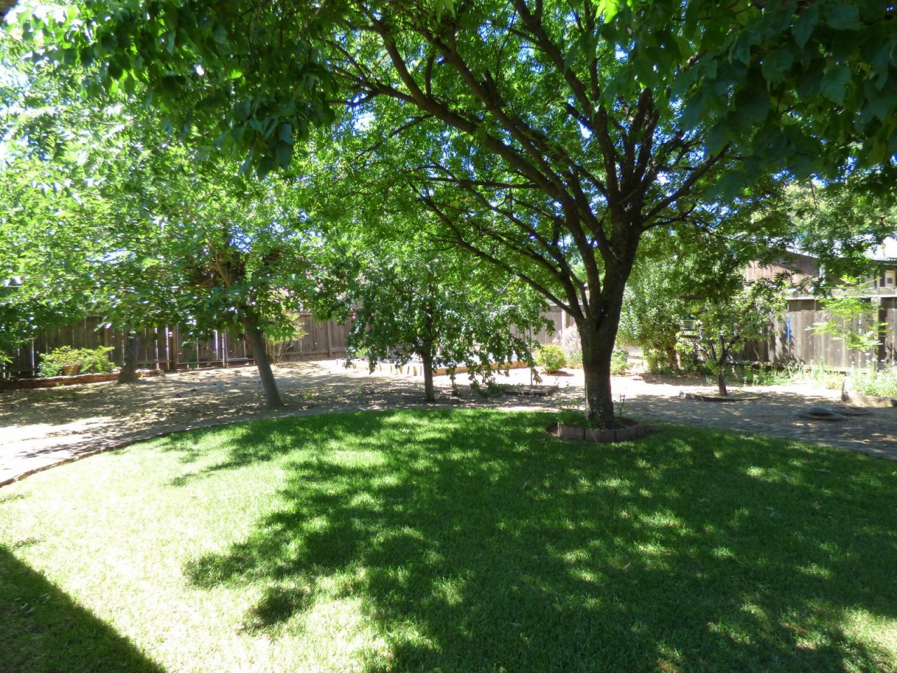 Nice, clean and affordable 2 bedroom Oroville home on large corner lot! New roof, most of interior freshly painted! Open living and dining area, sliding glass door to back yard. Ceiling fans in both bedrooms and laundry in the attached garage. Spacious front lawn and a large fenced backyard, with fruit trees, garden boxes and a covered patio, as well as a small lawn area, perfect for relaxing in the shade.