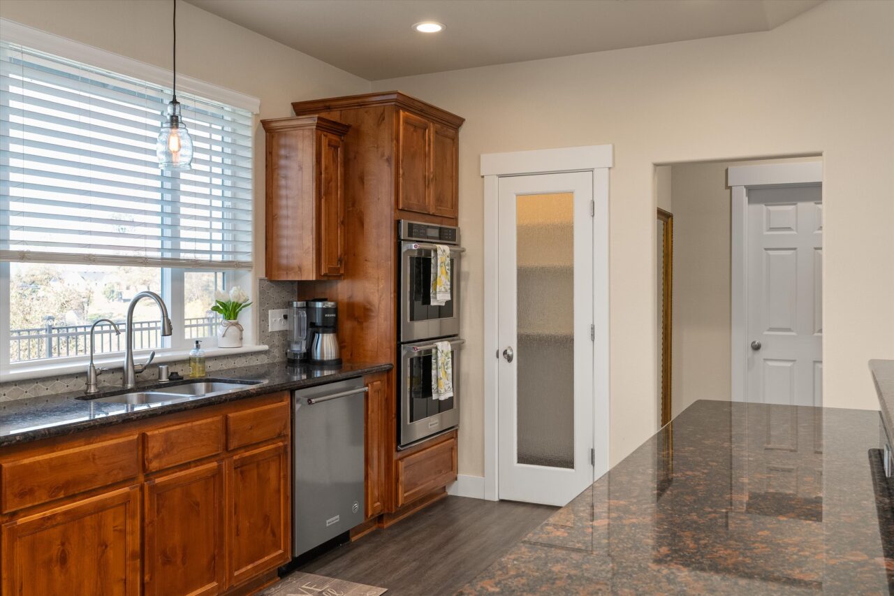 Built in 2020 by local builder Anderson Brothers Corp, this home is stylish, warm and welcoming, with an open floor plan, vaulted ceilings, and a cozy fireplace in the living room. The gourmet kitchen is designed for those who love to cook and entertain. It features custom tile backsplash, KitchenAid stainless-steel appliances, both electric & natural gas hookups, granite countertops, a large walk-in pantry, and double ovens. The open floor plan features a separate dining room area. From the living room, you can step outside onto your private back patio, a perfect outdoor space that creates an inviting atmosphere for relaxation or entertainment. It is landscaped with flowering perennials and mandarin, tangelo, and grapefruit trees. All three citrus trees produce fruit. There is also a front porch with a commanding view of the neighborhood and beautiful skylines.