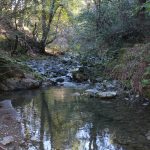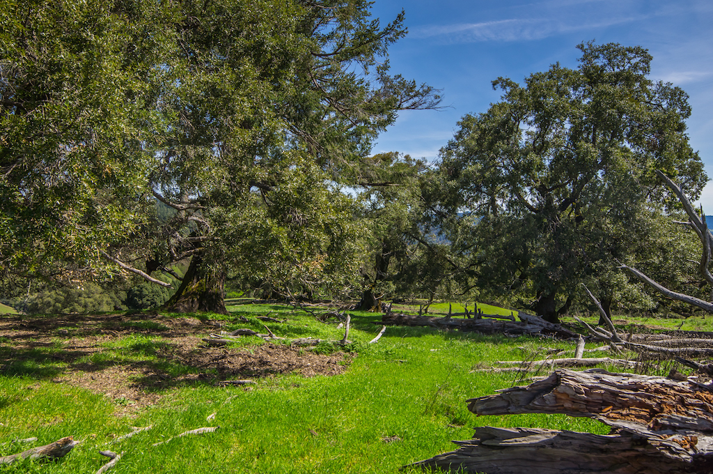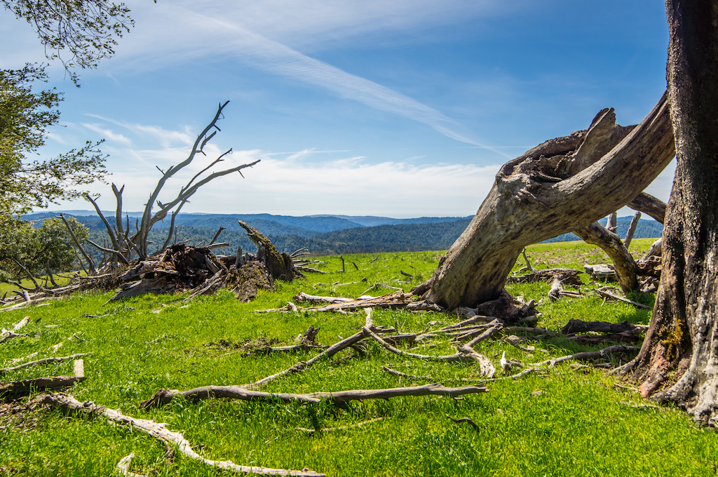 Entering the ranch’s valley floor you are accompanied by flowing creeks and towering woods. Once on the ranch, the valley floor open’s up to reveal oak strewn rolling pasture land that leads you pass the old vineyards to the iconic red barn and main Ranch Headquarters. Leaving the valley floor you ascend the coastal mountains stopping here and again to view the disappearing outlines of the structures way below. At the midpoint up the mountain, your attention is interrupted by the emerging horizon view out to the Pacific. Riding along the ranches high mountain spine and then dropping down into its north facing slopes, you enter the heavy fir and redwood forest that create the natural border around this sanctuary.