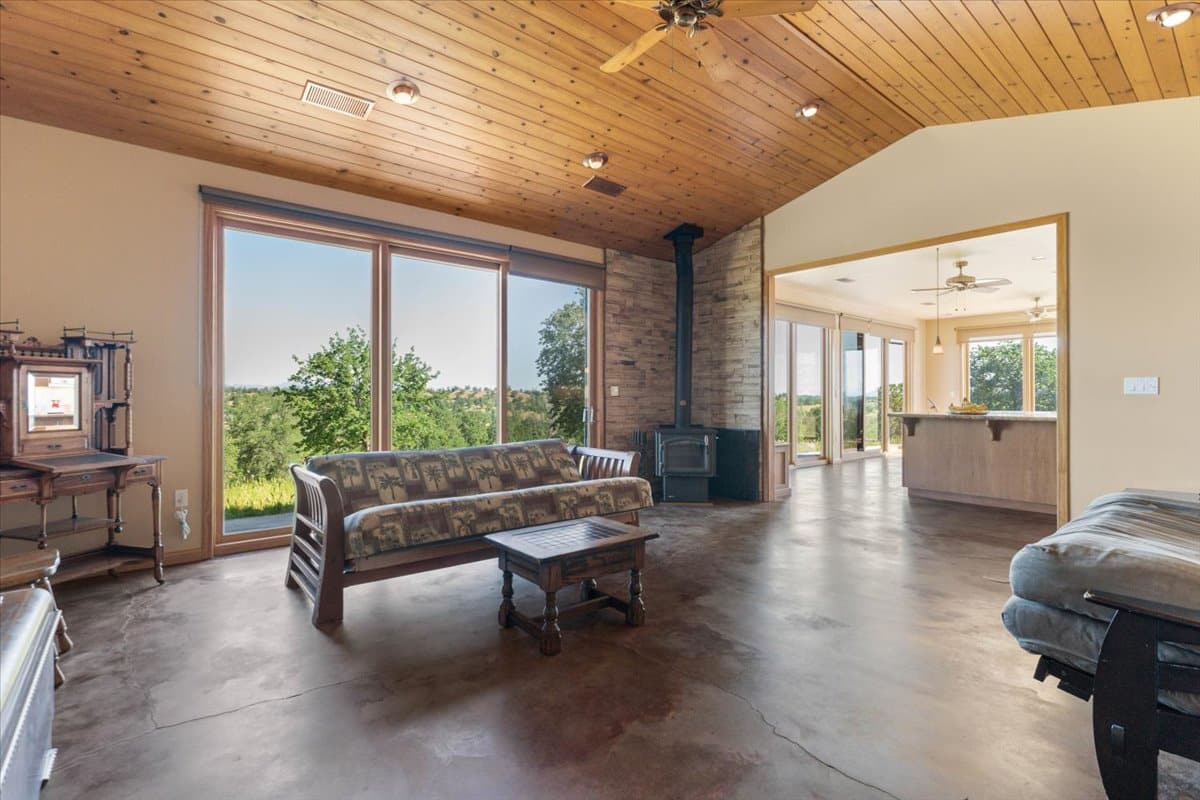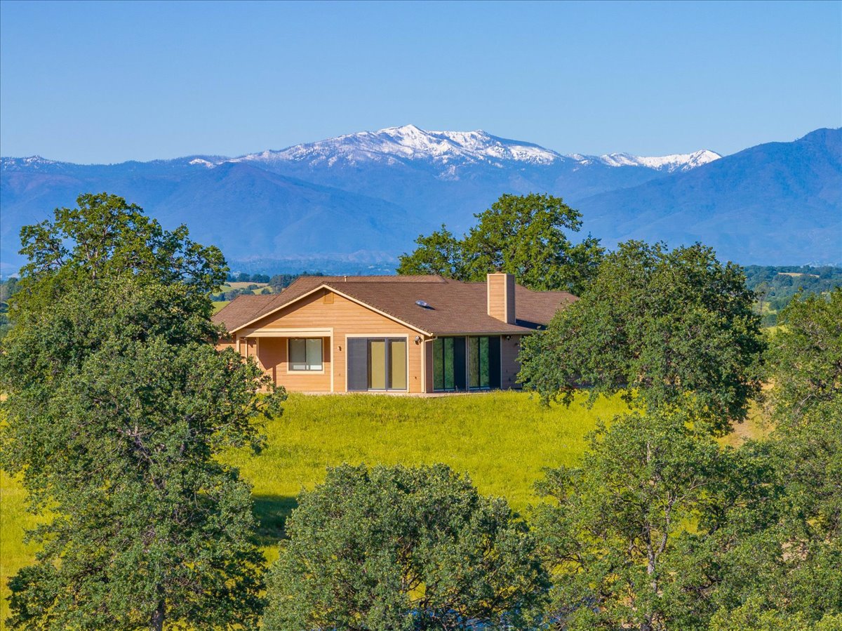 On nearly a full section of land, this idyllic property features a home with 360-degree views of the Trinity Alps, Mt. Shasta, Lassen Peak, and rolling oak woodlands as far as the eye can see. Used as an owner retreat and a winter grazing ranch for cattle, the property is in the Williamson Act for lower taxes. The well-maintained three-bedroom, two-bath home sits on a plateau, with walls of glass allowing views in virtually every direction. Polished concrete floors, granite counters, a sunken bath, a cathedral ceiling in the living room, and an efficient wood stove are just some of the amenities that make this a quiet and peaceful location for relaxing after a day of hiking, riding horses or mountain bikes, or exploring for hours on an all-terrain vehicle. The gated property is fenced and cross-fenced into several different pastures with water troughs for rotational grazing, and there are both year-round and seasonal ponds for livestock, fishing, or swimming. The domestic well has a production rate of 50 gpm, with two 2,500-gallon storage tanks. Additionally, there is a solar-powered ag well with a production rate of 5-12 gpm, accompanied by two 5,000-gallon storage tanks, which supply water to the troughs. Typically seen wildlife includes deer, turkey, wild pigs, ducks, quail, and dove, among others. Whether looking for a quiet and peaceful retreat or wanting to raise livestock on a productive and well-organized ranch, this property has a lot to offer!