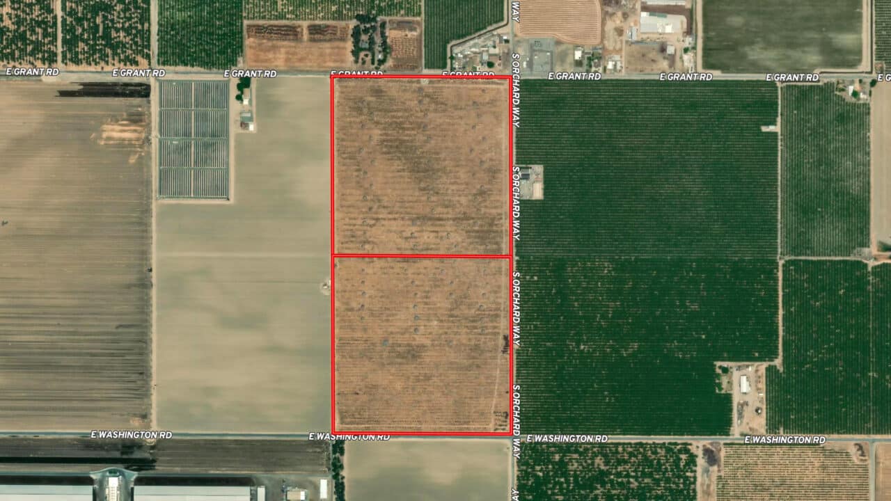 The sale includes two parcels totaling approximately 78 acres: APNs 075-071-018-000 (39 acres) and 075-071-019-000 (39 acres). As with all agricultural land in California, the property is subject to Sustainable Groundwater Management Act requirements, and buyers should conduct their own due diligence regarding groundwater and surface water availability, usage rights, and any current or future restrictions.