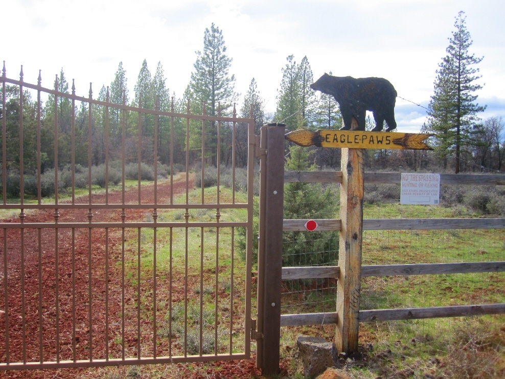 Turn off Highway 299 onto Day Road, go 5 miles, Badger Lane is on the left, go until you see gate with sign.
