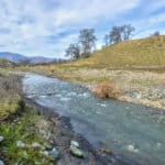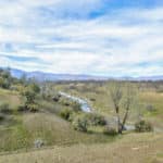 The property sits at the 800 ft. elevation. The property has varied terrain, from flat pastures to rolling hills, to steep hillsides. This beautiful property has road access in the front, with the flat pasture on top and Elk Creek below. The creek traverses the property for over 2,100 ft. The property is partially fenced. It would make a great purebred cattle ranch, vacation getaway, or classic recreational property.