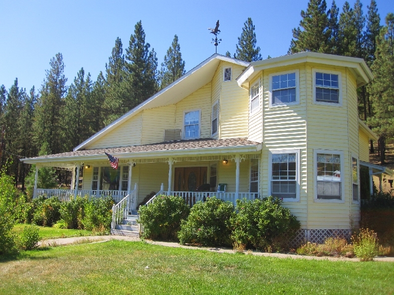 Stunning setting for this beautiful Victorian style home with Rush Creek flowing through the property. Enter through green pastures on both sides of lane, passing over Rush Creek, you feel like your entering a private paradise. The 3000 sf, 3 bedroom, 3 bath home is open and spacious with a country kitchen/family room. Kitchen features antique range, unique built in oven, plus octagon dining nook. The cathedral living room with wood stove in brick hearth has wonderful windows overlooking creek, pasture, and mountains. Both master bedroom and 2nd bedroom upstairs have walk in closets and private baths. Basement with rec room and storage area. Nice barn for storage or horse facility. Country living, here we come!