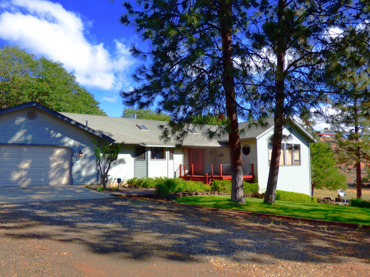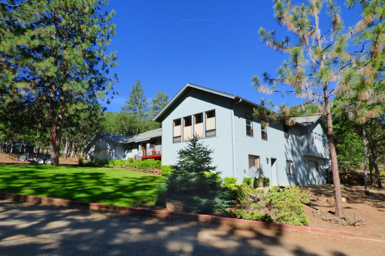 Enjoy a spacious country home right on the outskirts of Yreka! Located in a quiet setting, with filtered views of Mt. Shasta and plenty of deer who visit regularly, this clean and comfortable home offers a large kitchen, with lots of storage, an island with bar seating, large window over the sink and an open layout to the dining room! Enjoy both living room and a cozy den/family room with vaulted ceilings and pretty wood walls. There are master suites both upstairs and down. Downstairs there are also two bonus rooms and a separate door leading outside. There is a deck, plus patio, lawn, landscaping and plenty of shady oaks. An RV carport is in place, plus storage shed, in addition to the attached garage. All of this and over five acres of land!