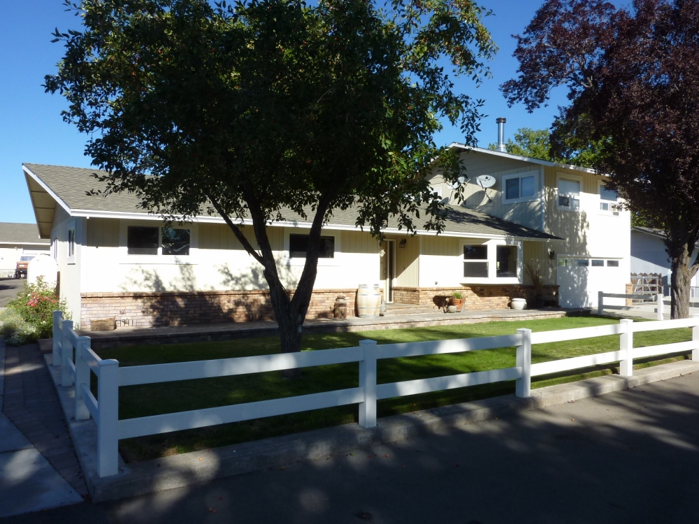 Gorgeous 2,056 +/- sq. ft. 4bdrm/3bth home features large kitchen w/custom cabinets, kitchen island, built in appliances, utility room, two master bedrooms 1 upstairs w/walk in closet and 1 downstairs, tile, laminate and carpet flooring, newer dual pane vinyl windows, French doors, wood stove insert and monitor heat. The property sits on .46 of an acre backing up to a large ranch and features vinyl and wood fencing, beautiful landscaping w/automatic sprinkler system, Koi pond, stamped concrete patio, paved driveway, and a 28’X32’ shop w/large 8’X16’roll up door, plus RV parking w/electrical hookup and plenty of room for all your additional toys.