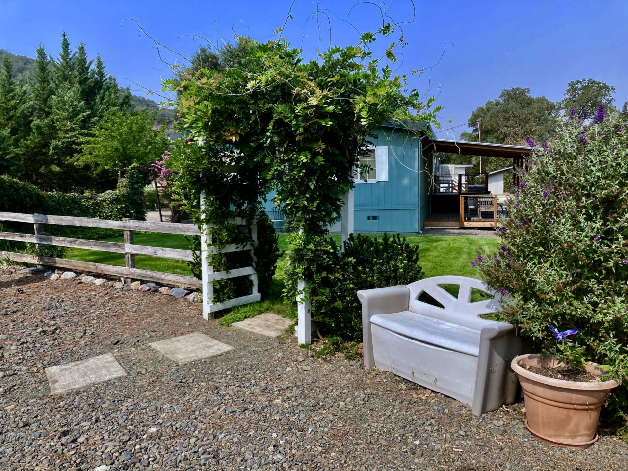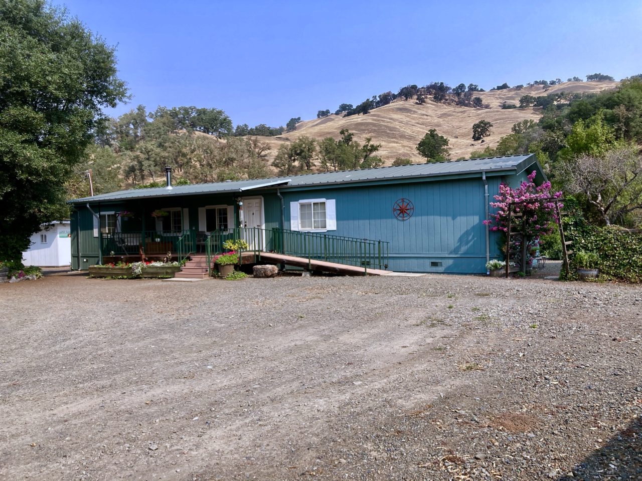 The 332 acre Guntly Ranch is situated on the south slope of the mountain range separating Ukiah Valley from Potter Valley with easy year round access off Highway 20. Approaching the Ranch’s Headquarters from the Main Entrance the driveway is hemmed in by the neighboring manicured vineyards until the green grounds of the Headquarter presents itself at the foot of the valley floor with its hilly backdrop and rock outcroppings in the far distant. The Ranch immediately signals good stewardship with its tidy grounds and fastidious care being evident throughout.