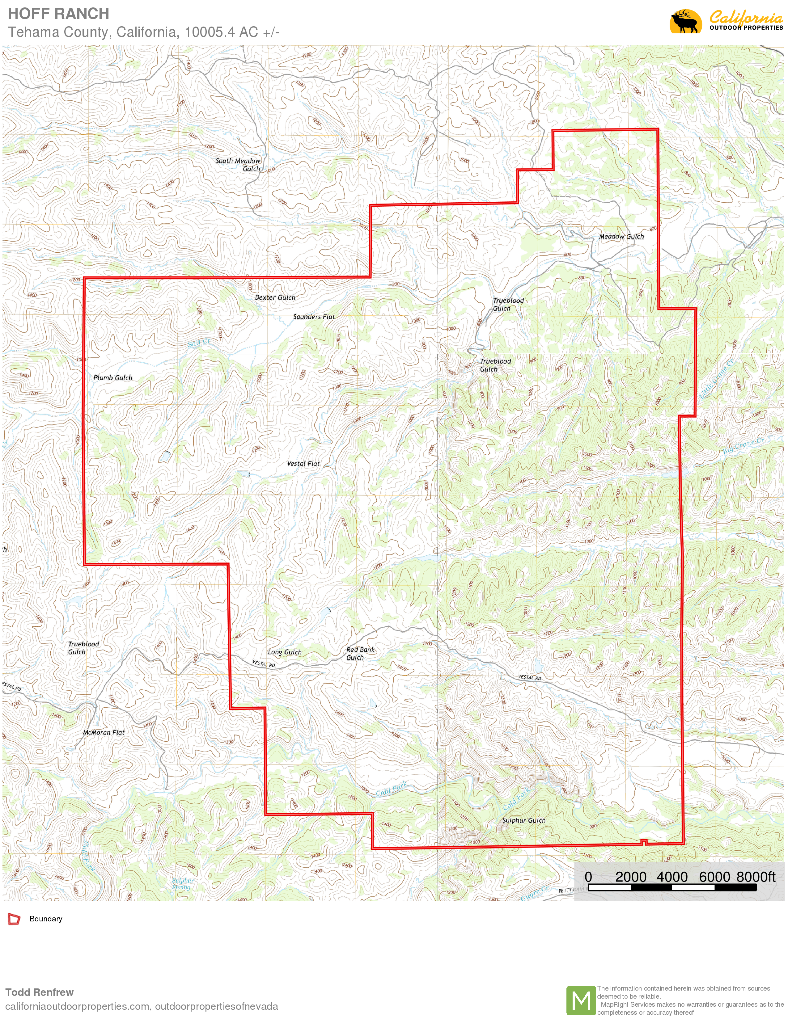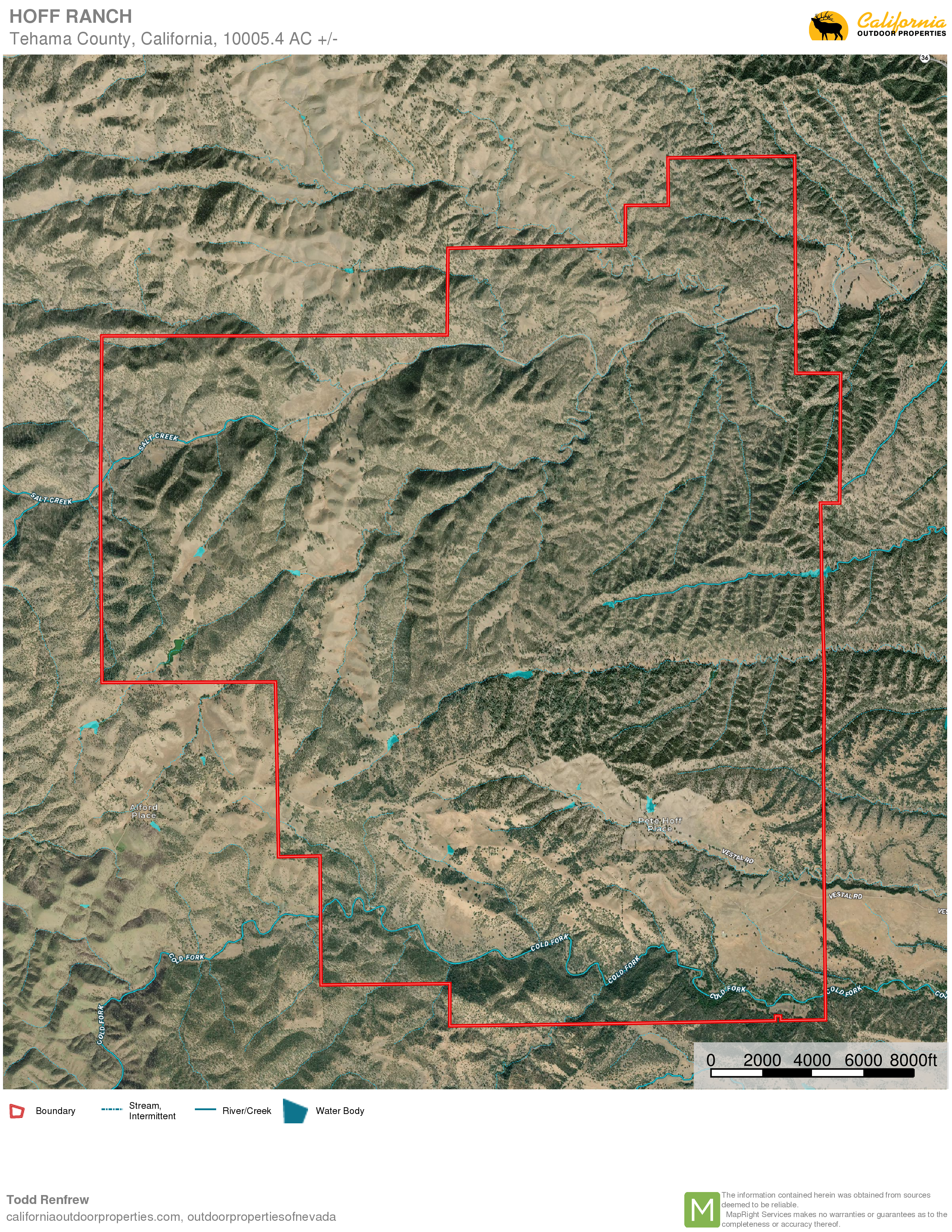 The 10,005- acre Hoff Ranch features oak grasslands and plentiful country for cattle grazing and recreational activities. The ranch sits at approximately 250-1500 foot elevation. It has varied terrain from the rolling hills covered in oak trees to the flat pasture lands. Hoff Ranch is located about 37 miles west of Red Bluff, CA, and approximately 154 miles from Sacramento, CA. The ranch is nicely water by ponds and a seasonal and blue line creek. Cattle are brought in early December and taken out on the first of June, running 550-700 cows for the season. This is high-value grazing land that could also serve as an outdoor getaway for hunting, fishing, horseback riding, and hiking activities. There is an off-grid manufactured home with a metal roof, barns, corrals, & solar. This is an excellent opportunity for a classic winter grazing ranch or a sportsman's retreat. In the Williamson Act.
