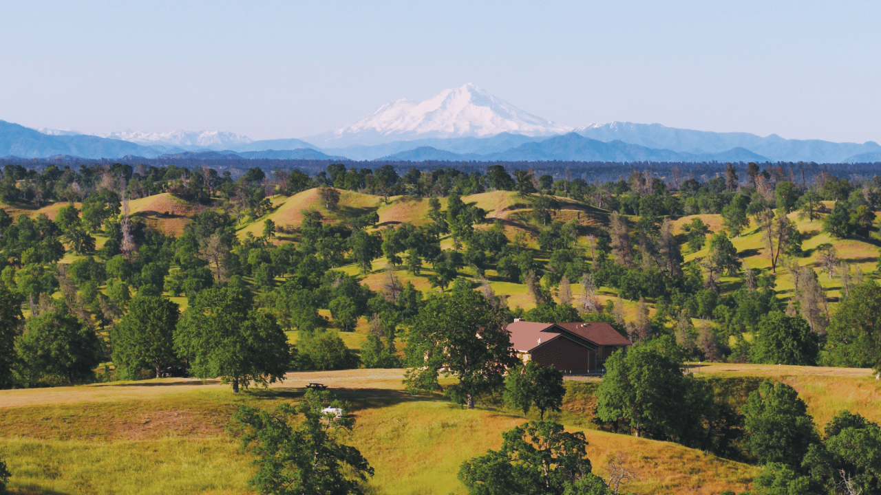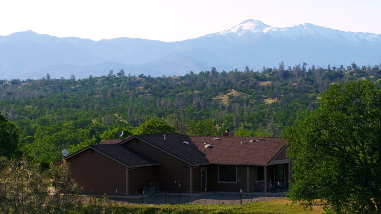 Privately tucked away 25 miles southwest of Redding, California, awaits the 635 ± acre Hope’s Ranch in Tehama County. Secluded on the top of a hill with expansive 360-degree breathtaking views of the Trinity Alps, Mount Shasta, Mount Lassen, and Yolla Bolla Mountains stands the single-story custom-built 2,092 square foot home with modern conveniences.