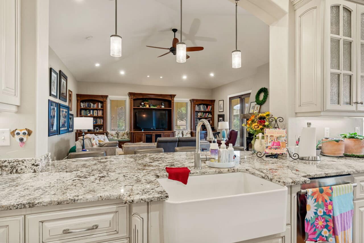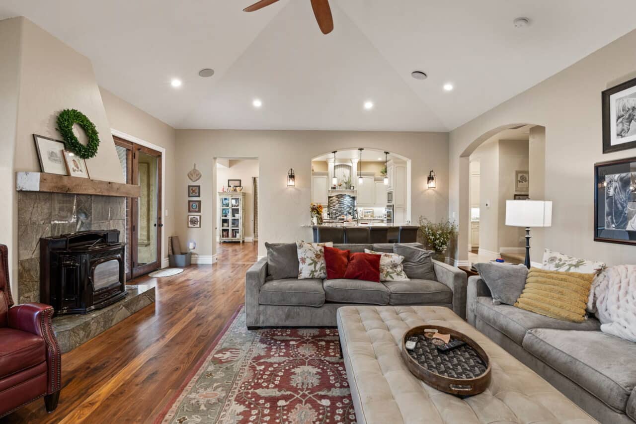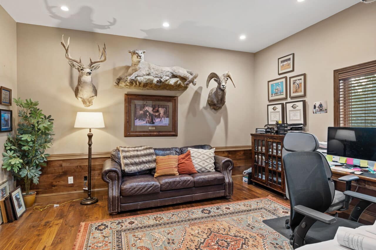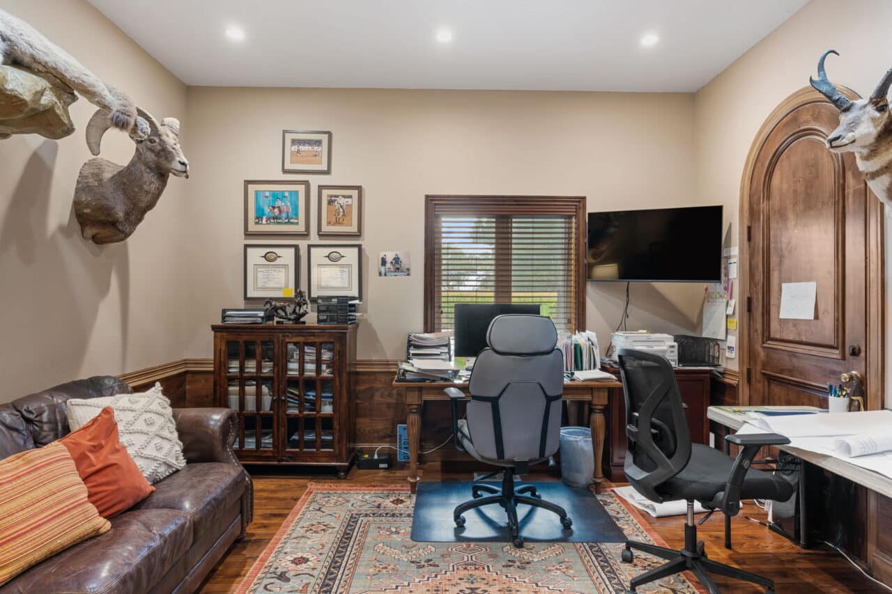 At the heart of the ranch stands a beautiful custom-built home, with every detail designed with comfort in mind. It offers over 6,500 square feet of living space, with six bedrooms, five and a half baths, an office, craft room, and a spacious three-car garage.