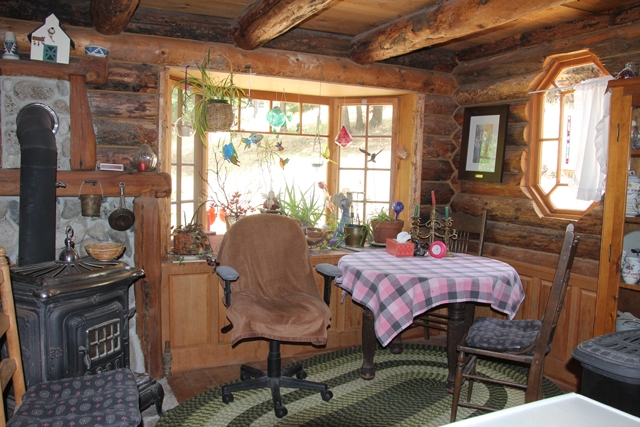 Cute little cabin in the woods Enjoy rustic living in this 1 1/2 story log cabin on 4.3 acres bordered by government land. Off grid. Has hard line phone. Two rooms used as bedrooms, area used for closet shared by both rooms. Permitted spring on adjoining Forest land provides water for cabin.