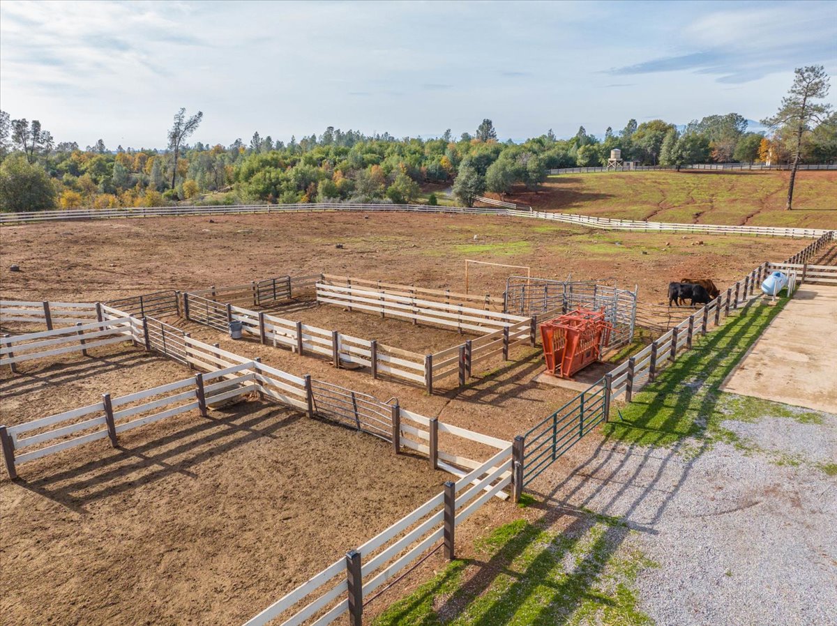 The property is set up for animals, now raising cattle, swine, goats and horses. There are roads throughout the fully fenced property, with rolling hills, small meadows, seasonal creeks and springs. Multiple wells provide water for livestock and wildlife. There is an additional storage building on the Southwest corner and a finished garage on the Northwest corner, both with separate entries to the ranch. It's easy to lose time here. The peace and tranquility of privacy, and the natural beauty of the land, gives you a sense of overall wellbeing. The ranch is less than 3 miles to the Jones Valley boat launch on Shasta Lake, 4.5 miles to Bella Vista, and 10 miles into Redding. This is a unique property offering immaculate infrastructure, a beautiful setting and privacy, yet just minutes to reality.