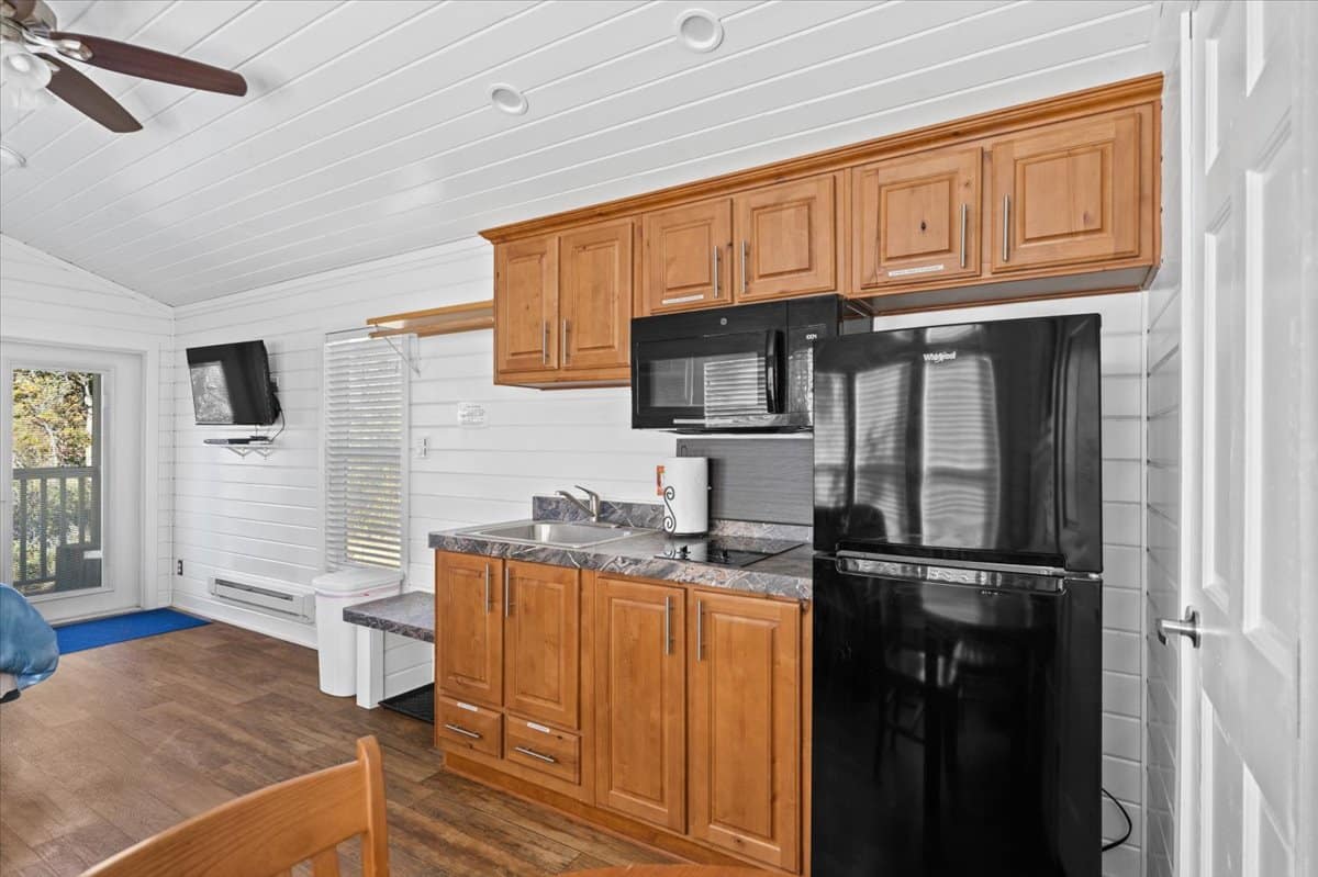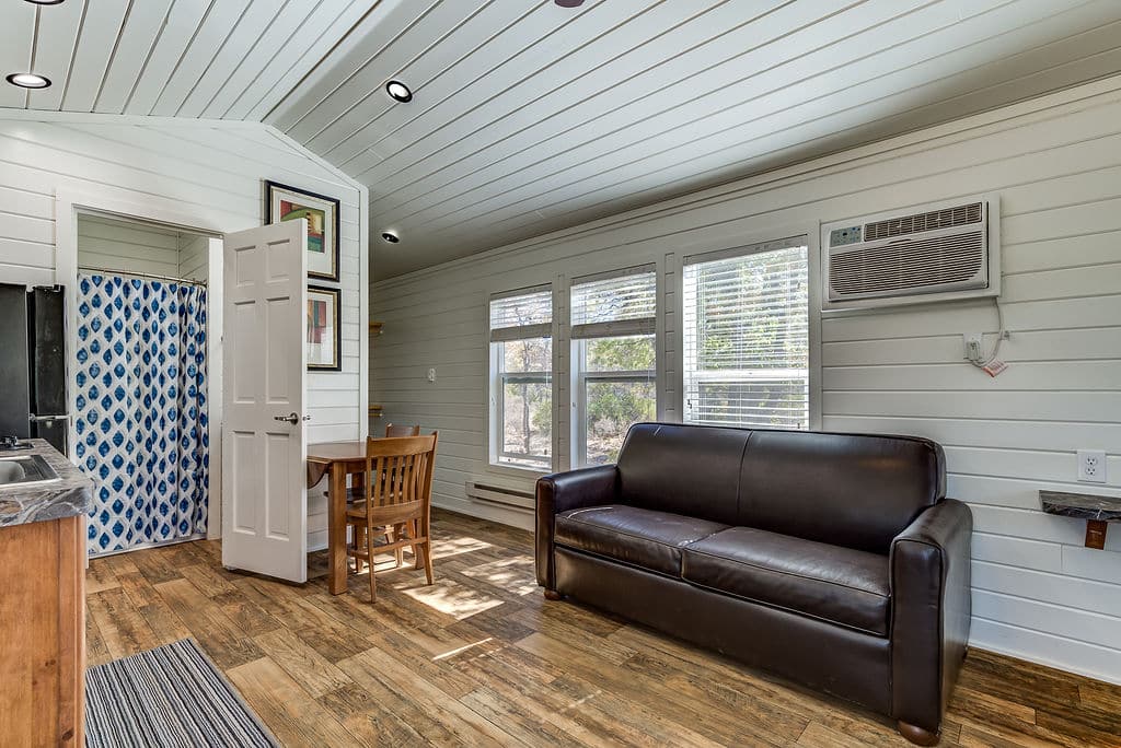 - Living area, kitchenette, bedroom, full bath and upper loft.