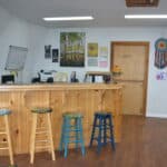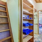 - 1 – Smaller rollup door to shop with built in shelves and concrete floor.