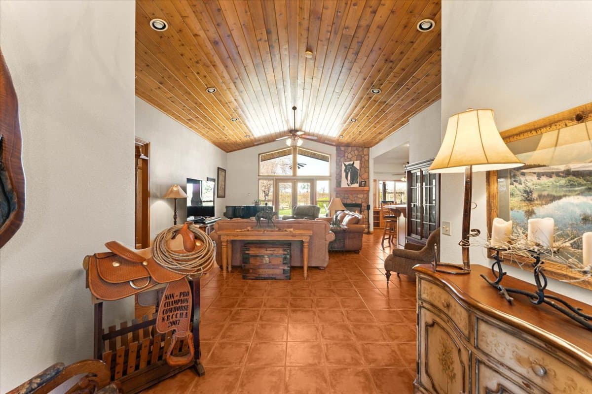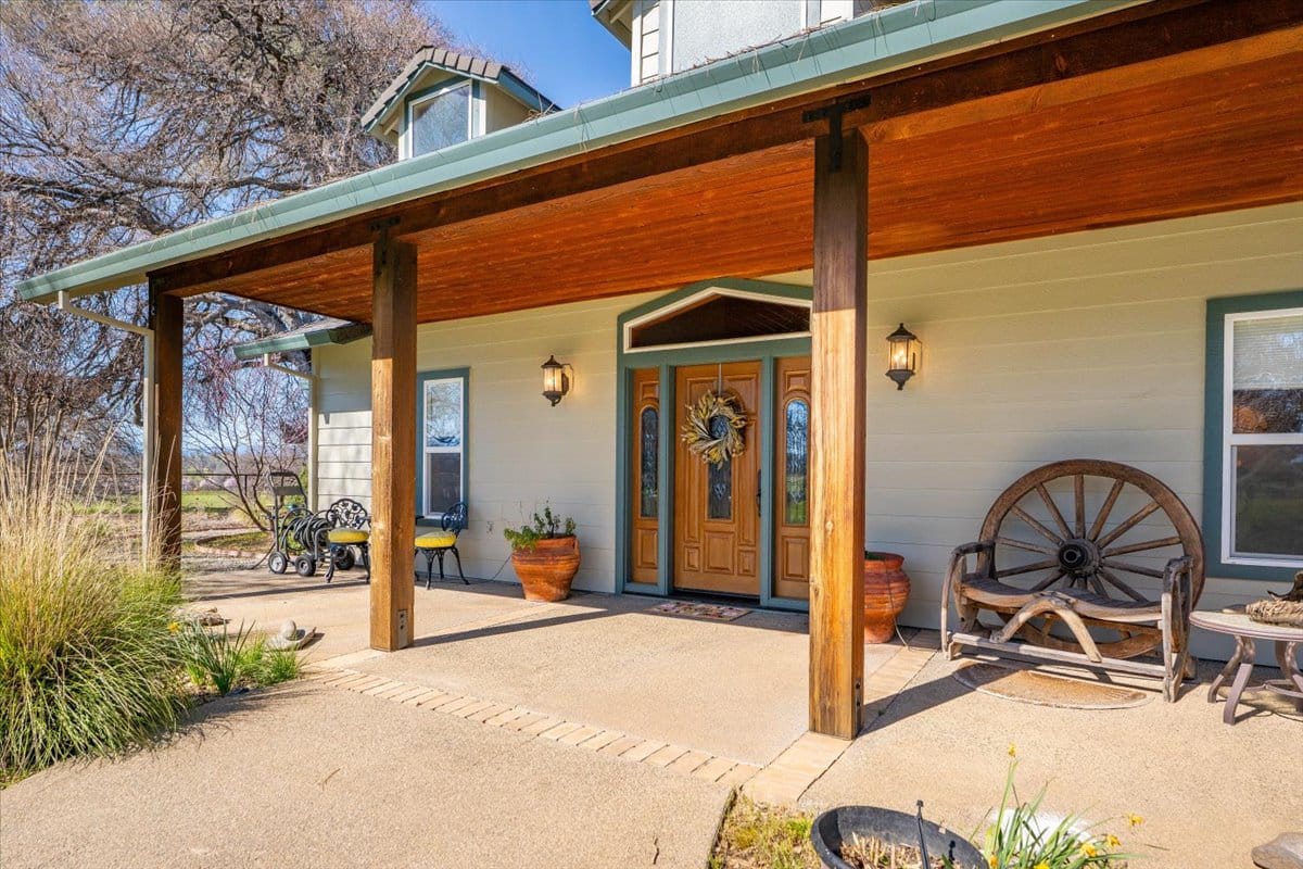 Just a few minutes west of Cottonwood, this private and beautifully maintained 2,705 sq.ft., 3 bed, 3 bath home sits on 80.72+/- acres. Electronic gates greet you at the entrance of the property, ushering you past a small vineyard, down a paved driveway that lands you at the heart of this equestrian estate. Designed for the dedicated roper or serious horse enthusiast, the 158x300’ arena and the 50’ round pen were engineered with a great base for improved footing and drainage in all weathers. The roping arena boasts a team roping chute with a return alley that’s constructed with high-quality pipe and cable fencing. You can enjoy views of the ranch, and both Mt. Shasta and Mt. Lassen while you ride. A hay barn accompanies a separate 60x80’ main barn with 5 MD barn metal stalls, each with new wooden MD stall front, new waterers and each with its own 12x36’ turnout, plus a freshly remodeled tack room with instant hot water, spacious center aisle, heated wash rack, and shop space with an additional garage bay. The home has a 3 bed, 3 bath split floor plan design, with an office, formal dining, and an open concept great room/living room, upstairs bonus room, and an attached garage. The living room offers high vaulted ceilings, a gas fireplace with flagstone hearth, and large windows to enjoy the views of the yard and ranch. Tile floors throughout, custom oak cabinetry, solid oak doors, and backup generator assure the next buyer that all was thought of when planning out this home. Tasteful landscaping surrounds a large covered patio, with a fire pit, piped in propane, recessed lighting, fans, and satellite TV outlets; ready for all of your entertaining needs. The property is fully fenced and crossed fenced, with seven pastures for horses or cattle, each with water troughs on auto setup. The home is permitted as an Air B'n'B and is occasionally used for special events (stockdog trials, jackpot ropings, weddings, etc.) Tehama County is great area for equine enthusiasts with a wide variety of horse events and activities available. This property is also less than an hour to the popular Rolling Hills Casino Equestrian Center. Cottonwood Ranch is move-in ready for the buyer who is looking for quiet, elegant country living with room for horses and livestock – make an appointment for your private tour!