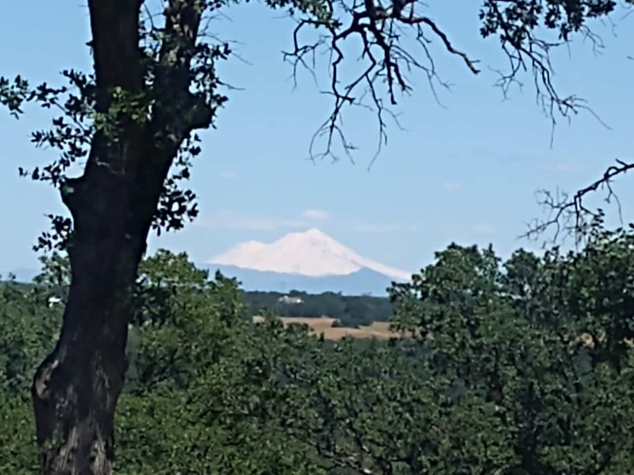 Views: Panoramic mountain views — Yolla Bolly range (west), Mt. Shasta (north), Lassen Peak (east).