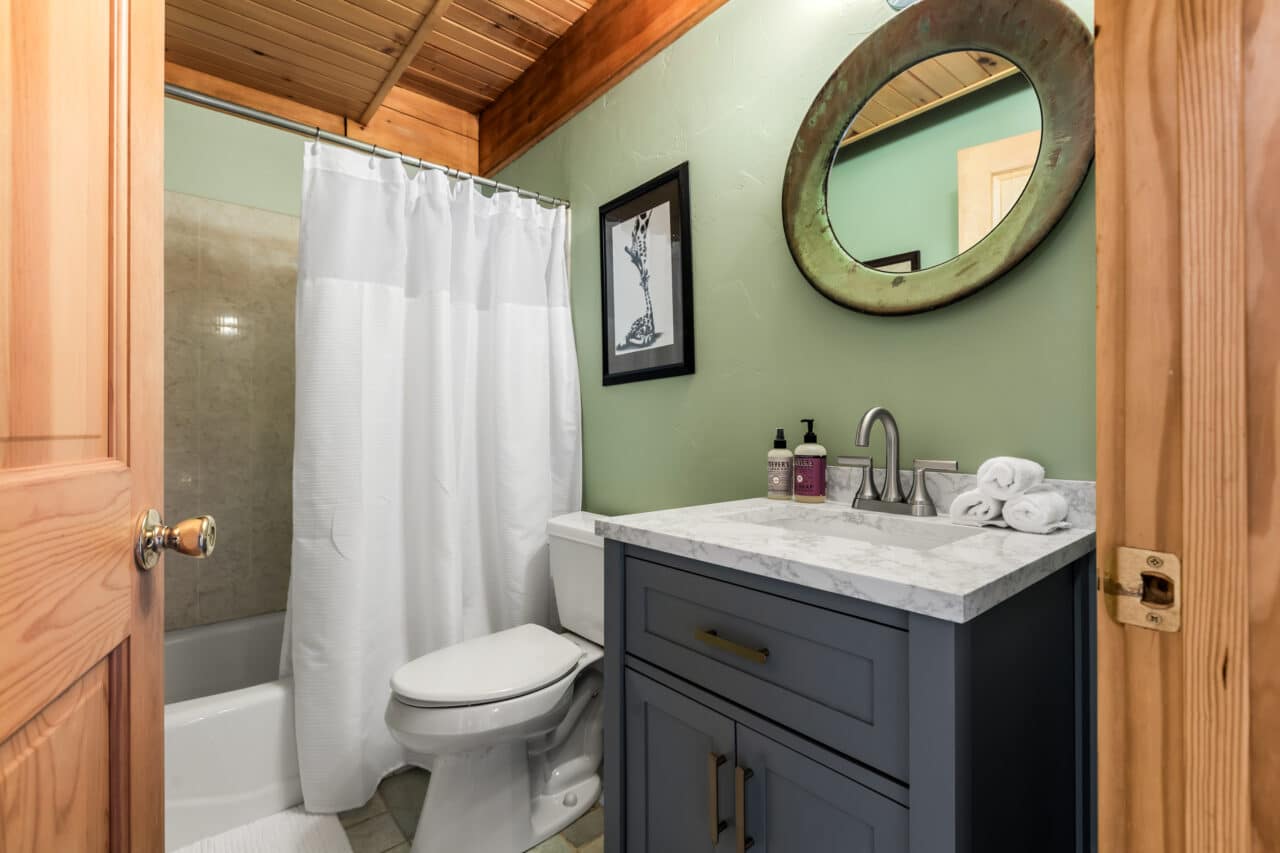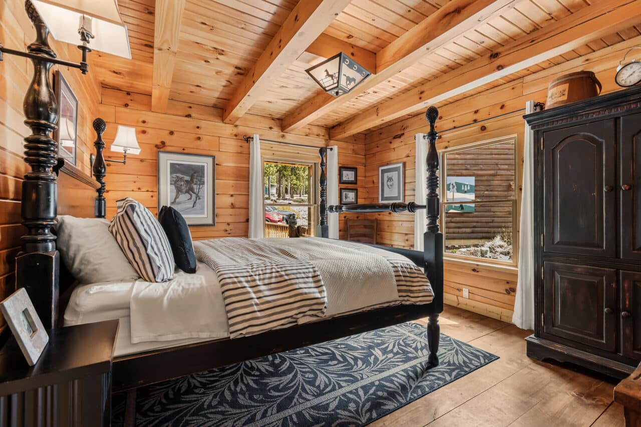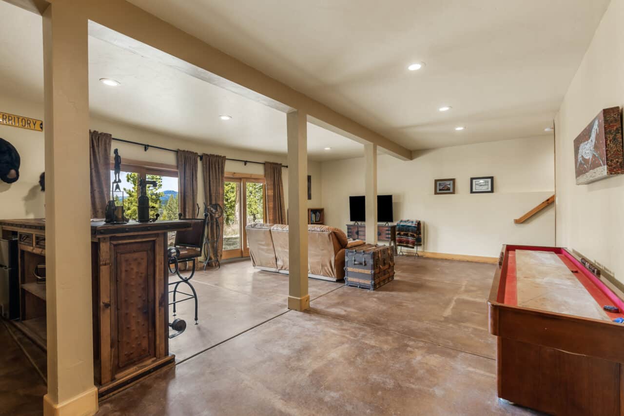 Walking into the stunning 3,800-square-foot custom log home with a wrap-around deck, you’re greeted with expansive mountain peak views from the floor-to-ceiling windows in the living room. The large kitchen features custom cabinets, stainless steel appliances, a dual gas range, and an island. With three bedrooms & 2.5 bathrooms, there’s plenty of space for family and/or friends. On the ground floor, you’ll discover an entertainer’s delight with a wooden bar and plenty of space for entertaining, complete with a half-bath. Also, there is an acoustic paneled studio for musicians, aspiring musicians, or ripe to be transformed into a podcast/recording studio, fully functional office, or home theatre.