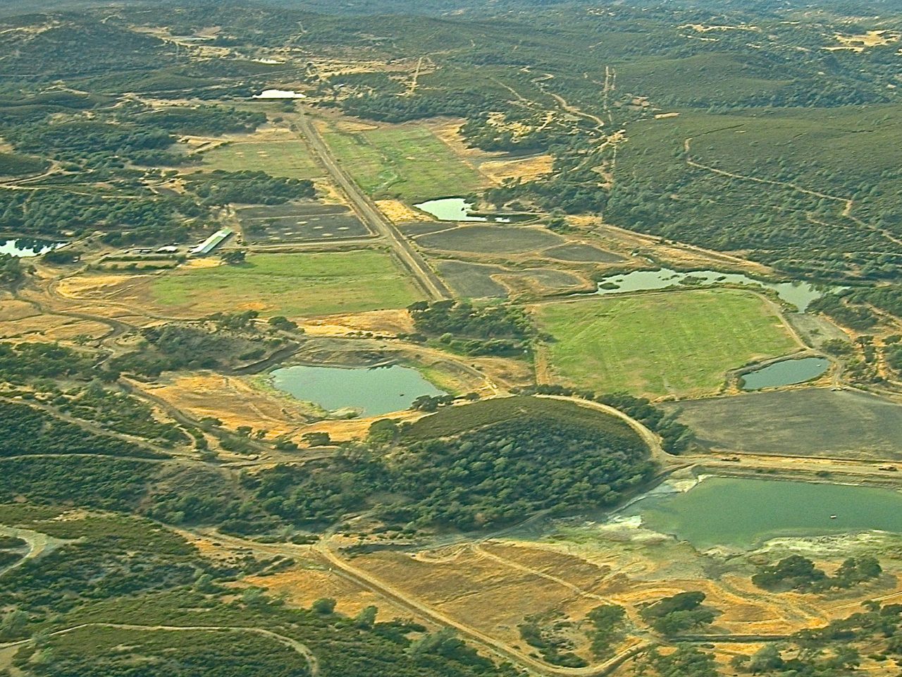 The fields and valley landscape that surround the main airstrip are home to 20 separate reservoirs of varying size. They continue to be used for swimming, fishing, boating, crop irrigation, and stock watering. With great thought over the past forty plus years, the owner has developed the water storage canal/ditch system, and roads throughout the ranch so that they offer maximum efficiency.