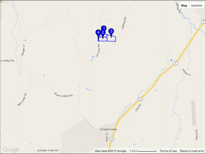 From Yreka, Take Hwy 3 through Fort Jones and at Greenview, turn Right on to Quartz Valley Road. Follow to Oro Fino Road, to Lighthill Rd.