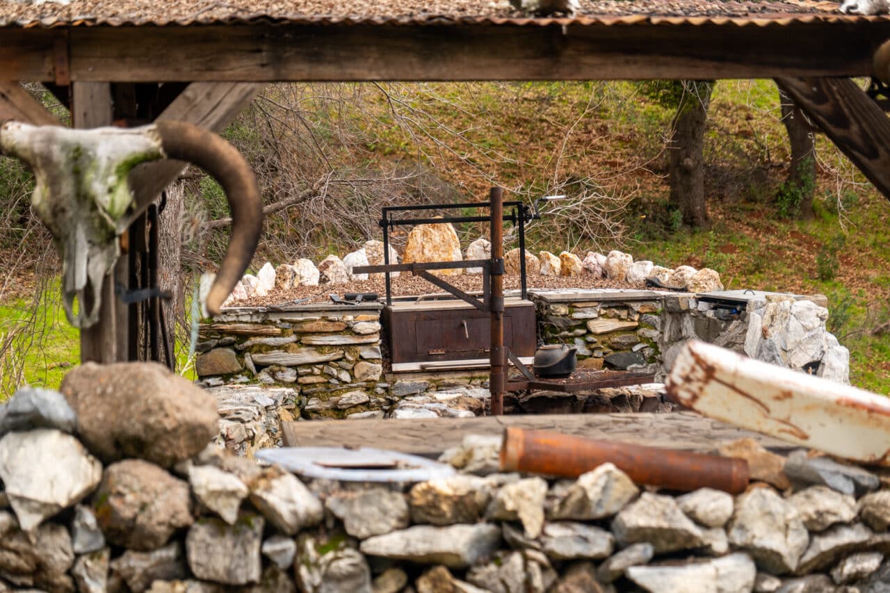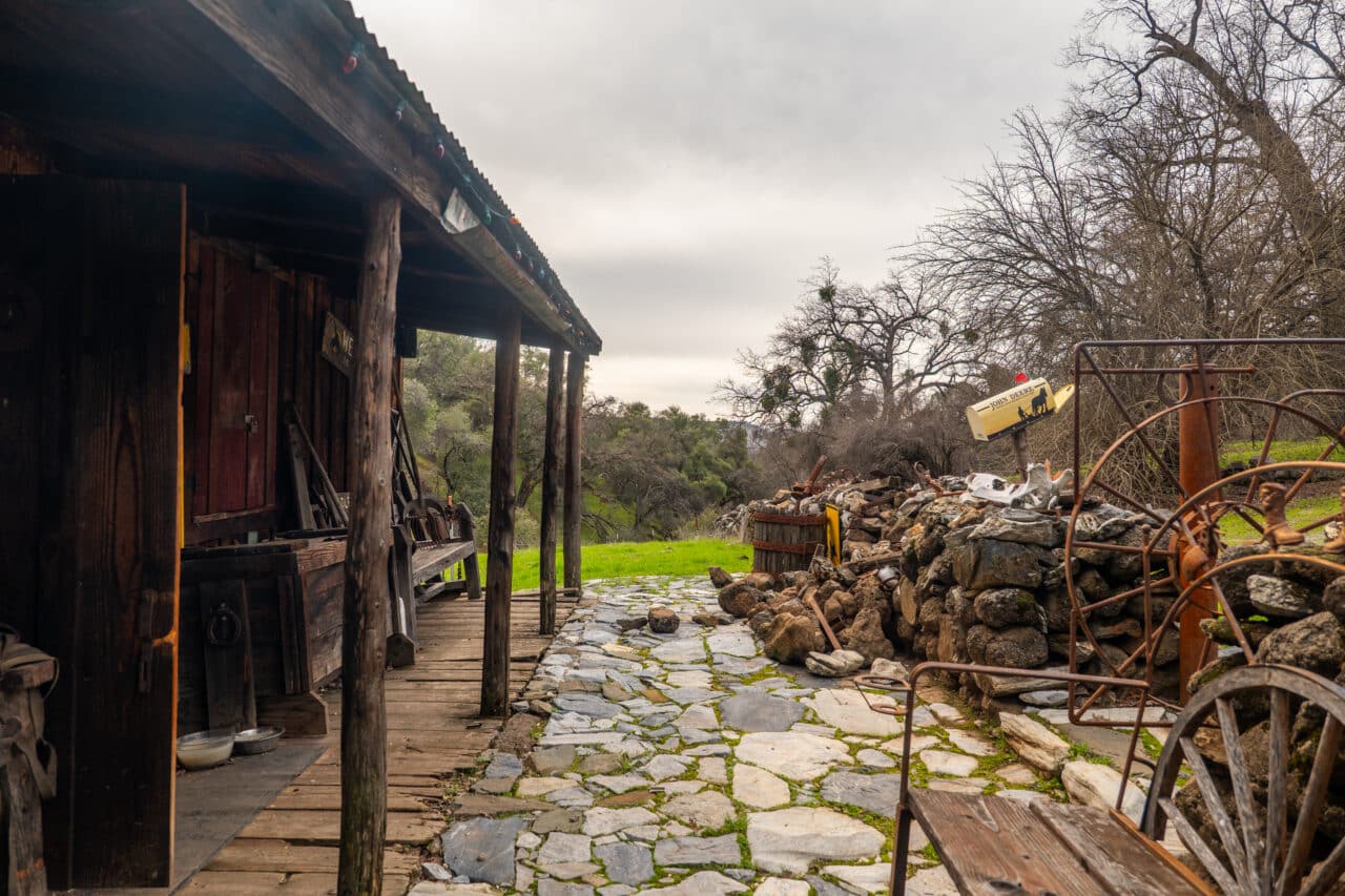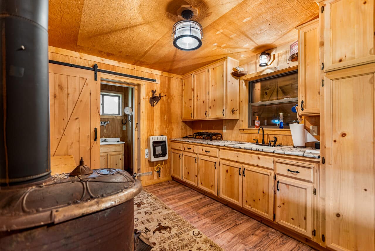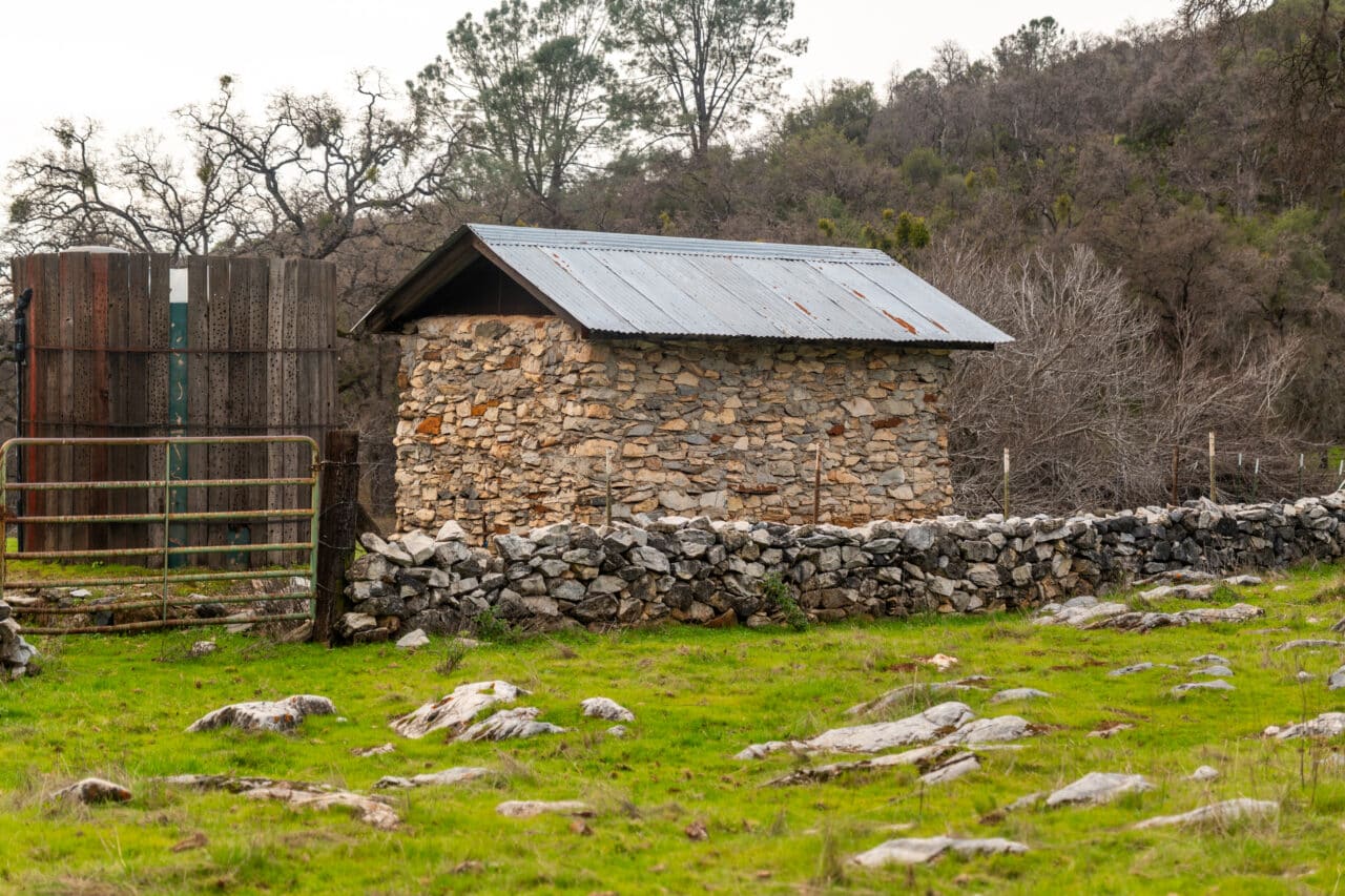 The ranch is well-equipped for extended stays or weekend escapes. A charming two-room stone cabin provides rustic comfort with bunk accommodations and a functional kitchen — perfect for hosting family and guests during hunting season or quiet country getaways.  Situated next to the creek, there is a stone patio, with build-in BBQ and a trellised seating area for outdoor dining.  A spacious wooden barn features living quarters and wide overhang sides, offering equipment storage, shelter for livestock, and additional covered workspace.