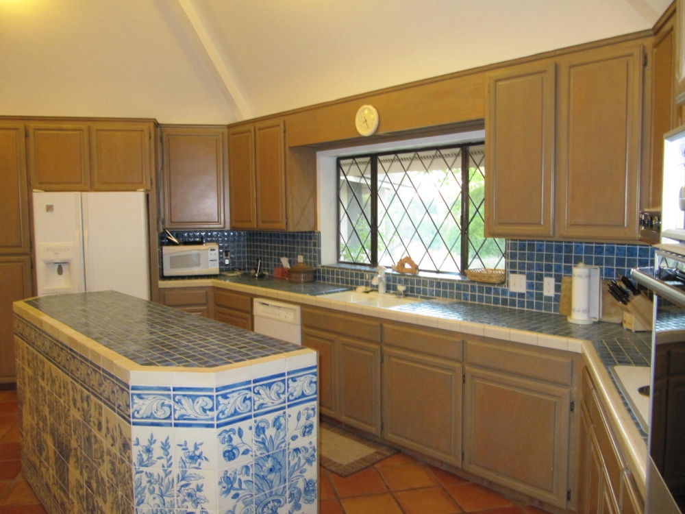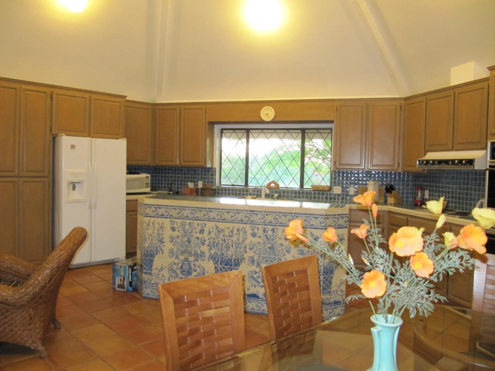 • The oversized kitchen has a center island & large eating area. A long concrete driveway leads all the way to the hilltop home. The entire parking area around the house is also concrete.
