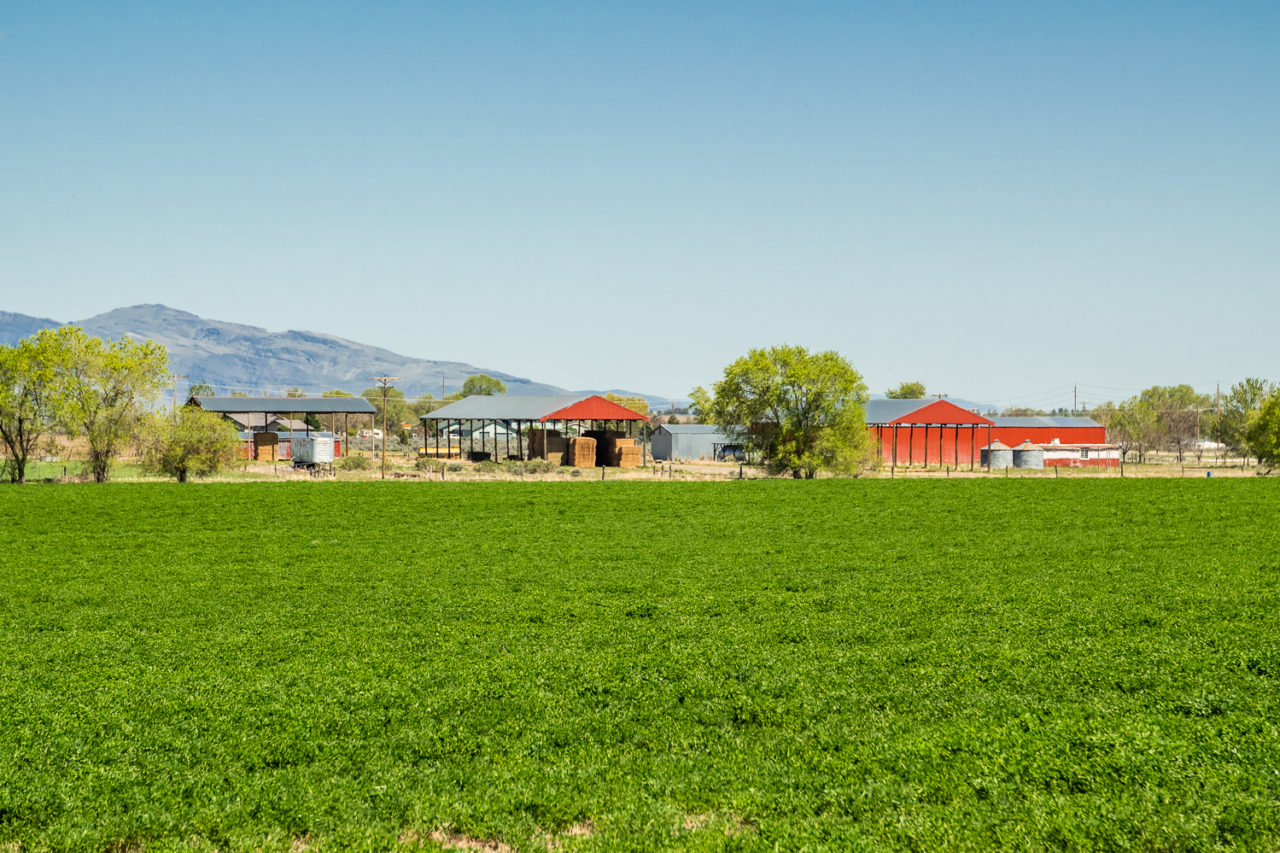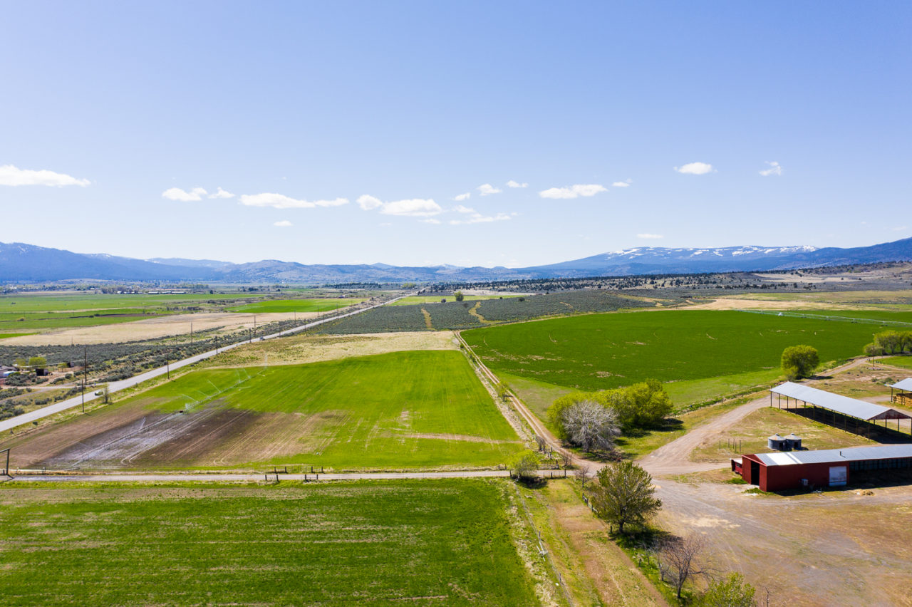The 847 acre Rice Canyon ranch is located just a few miles east of Susanville, California in Lassen County. The ranch lies within the Honey Lake valley with broad vistas of the Sierra Nevada mountains and the Great Basin. This ranch boasts over 250 acres of irrigated lands under two center pivots and wheel lines. There are 90 acres in alfalfa with the balance in grain. The grain can be planted back into alfalfa or any irrigated crop. There are 2 ag wells, 3 domestic wells, 3 large pole barns for hay storage, 3 homes, a feedlot and plenty of equipment storage buildings as well as a shop. The back of the ranch borders public lands managed by Bureau of Land Management. Antelope, deer and other wildlife frequent the property. The ranch runs approximately 150 pair but with proper management that number could increase.