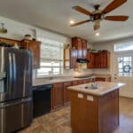 The 38+/- acreage near Frank Raines Regional Park offers not only stunning sunrise and mountain views but also a range of amenities tailored for comfortable living. The 2006 manufactured home, customized for the owner, boasts practical features such as a large walk-in pantry, mudroom, and a kitchen with an island for convenience in meal preparation. The addition of a custom desk/hobby area off the living room highlights attention to detail and functionality. The versatility of the space is evident with one bedroom doubling as an office, complete with French doors and bunk beds for added utility. The main suite offers privacy with its own bath featuring a soaking tub and separate shower, ensuring relaxation after a long day. Outdoor living is enhanced with a large covered deck area and an enclosed swim spa room, providing options for leisure and wellness activities. The lower portion of the property features a spacious 30'X60' insulated shop, offering ample storage or workspace for various projects. Additionally, an RV cover with solar hookups adds practicality for outdoor enthusiasts, although the RV itself is not included. Overall, this property seems to offer a blend of comfort, functionality, and natural beauty, making it an appealing retreat for anyone seeking a serene lifestyle close to nature.