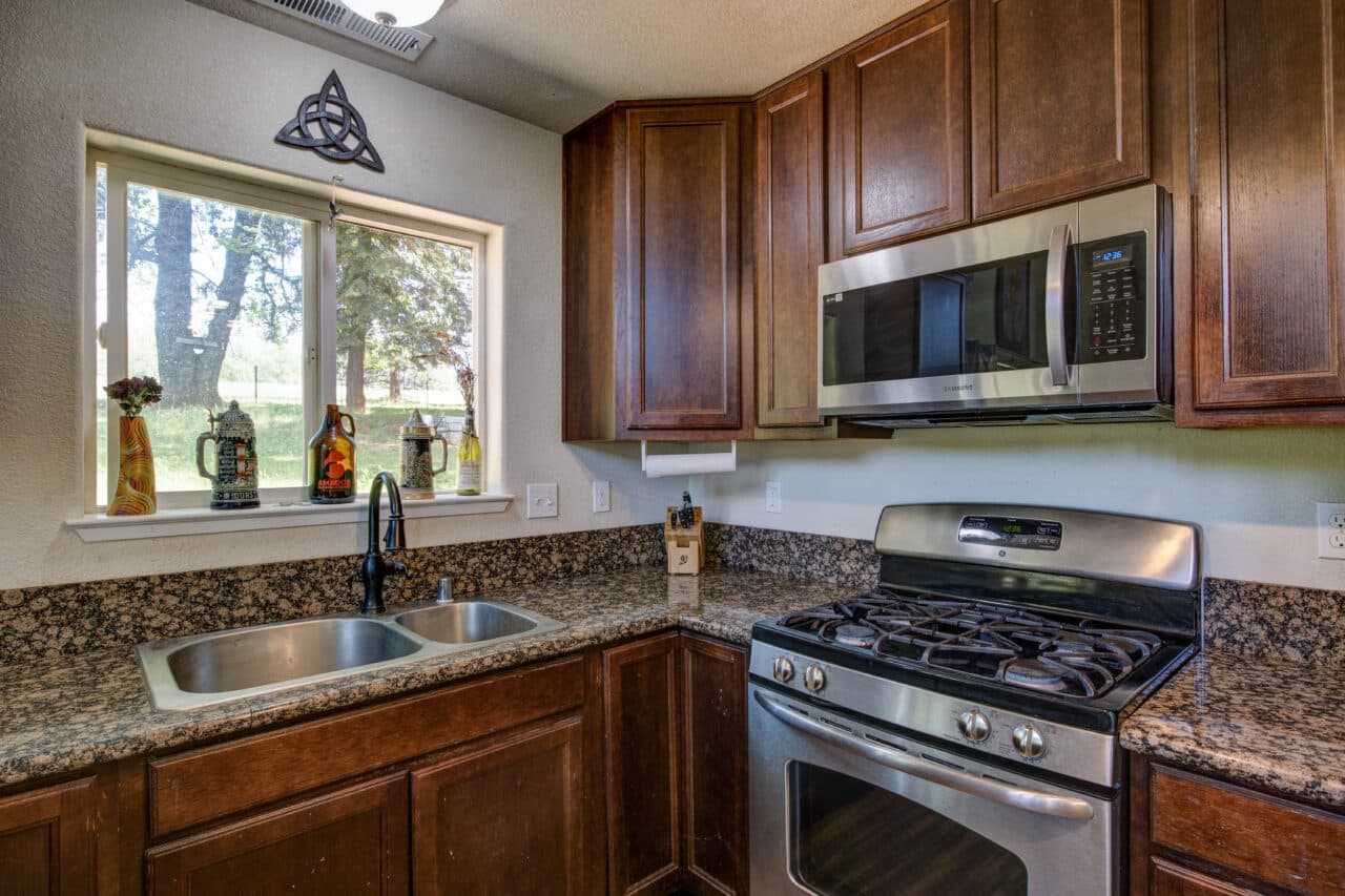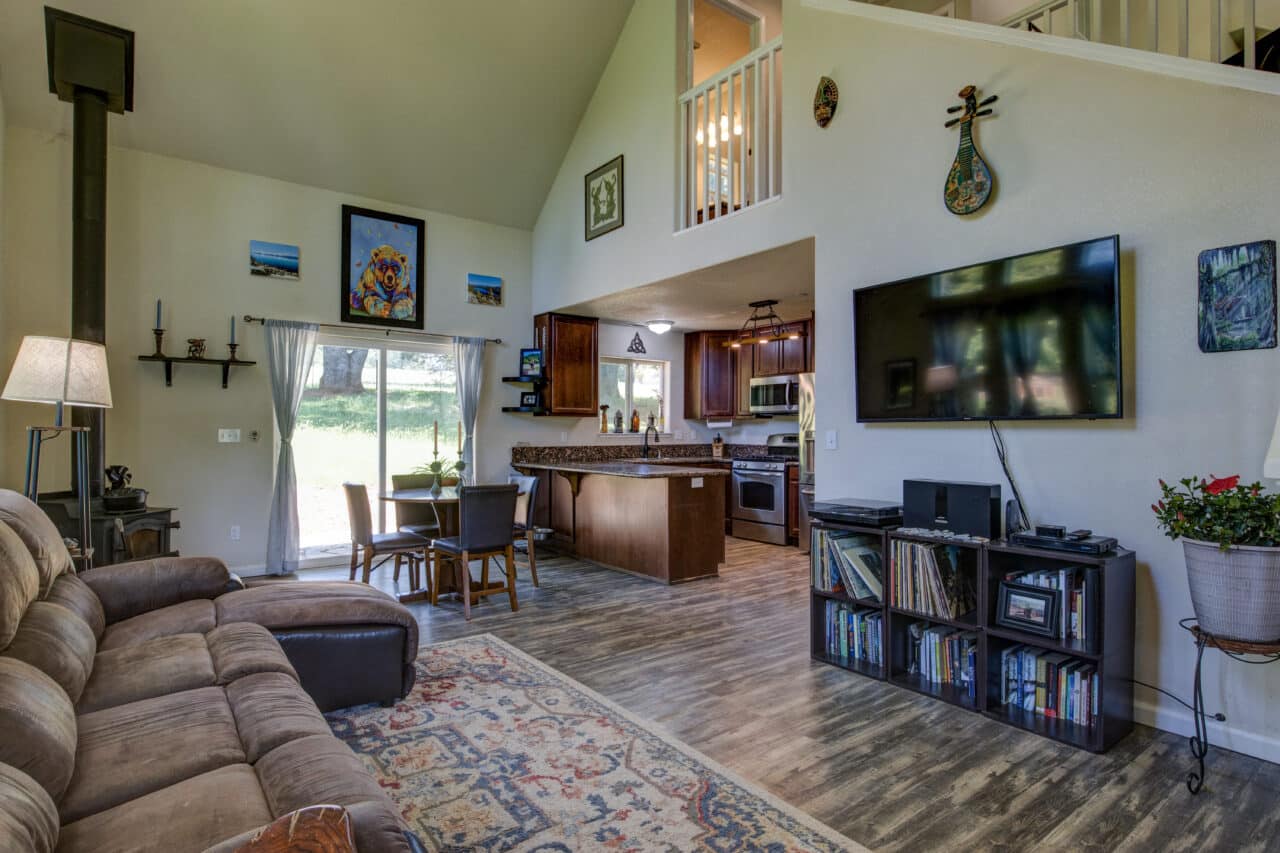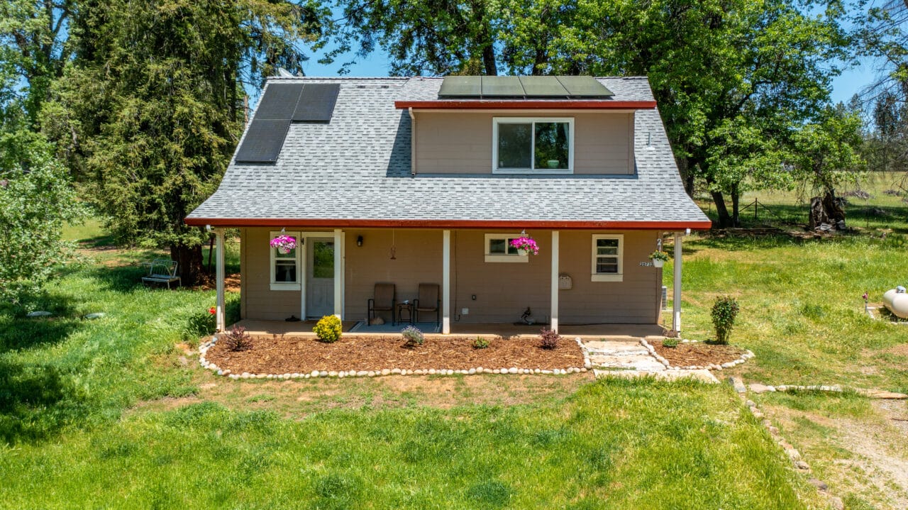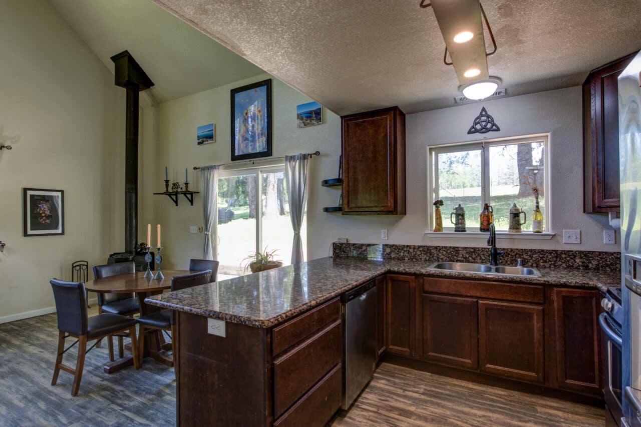Discover the allure of this 1620 sqft exquisite 2 bed, 2 bath home on a sprawling full acre of land. Nestled in the scenic foothills of Calaveras County, this property offers an idyllic retreat. Step inside to see a spacious open floor plan. The kitchen and bathrooms boast gorgeous granite counters, complemented by cherry wood cabinets. Adding luxury vinyl plank flooring enhances the overall appeal, while a cozy wood-burning stove creates a warm ambiance. The en-suite bedroom is conveniently located downstairs, with laundry facilities and ample storage space. Upstairs, you'll find another bedroom with a full bathroom and a versatile loft area ideal for a home office, extra bedroom, or yoga studio. High-speed internet connectivity ensures a seamless remote working experience. Stepping outside, you'll be greeted by a spacious backyard with a fire pit, two storage sheds, and a woodshed. The entire property is securely fenced. Solar panels were just installed. Abundant sunlight exposure makes this an ideal setting for flower or vegetable gardens. They are conveniently located near exceptional parks, hiking trails, and 1 hour to Kirkwood Resort. It's just a short drive to shopping centers and casinos, providing easy access. Don't miss this one!