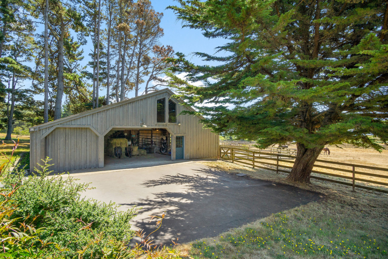 This three-acre estate offers manicured grounds housing a 2,200 sf multi-function garage/workspace/barn, and is the only private stable in The Sea Ranch. The property includes the latest on-demand generator, solar panels, fenced pastures, plus an established vegetable garden and dog run.