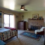 The living room in the main house features a large fireplace with wood storage, open vaulted ceiling and spiral staircase leading upstairs. The kitchen has ample storage, a walk-in pantry, built-in desk and large windows overlooking the yard. There are bedrooms on every level, several with their own fireplaces, bathrooms and cedar-lined closets. Upstairs, the “morning kitchen” is a delightful place for breakfast — it opens to a second story balcony so you can enjoy the spectacular view. There is also a large, sunny office on the second floor.