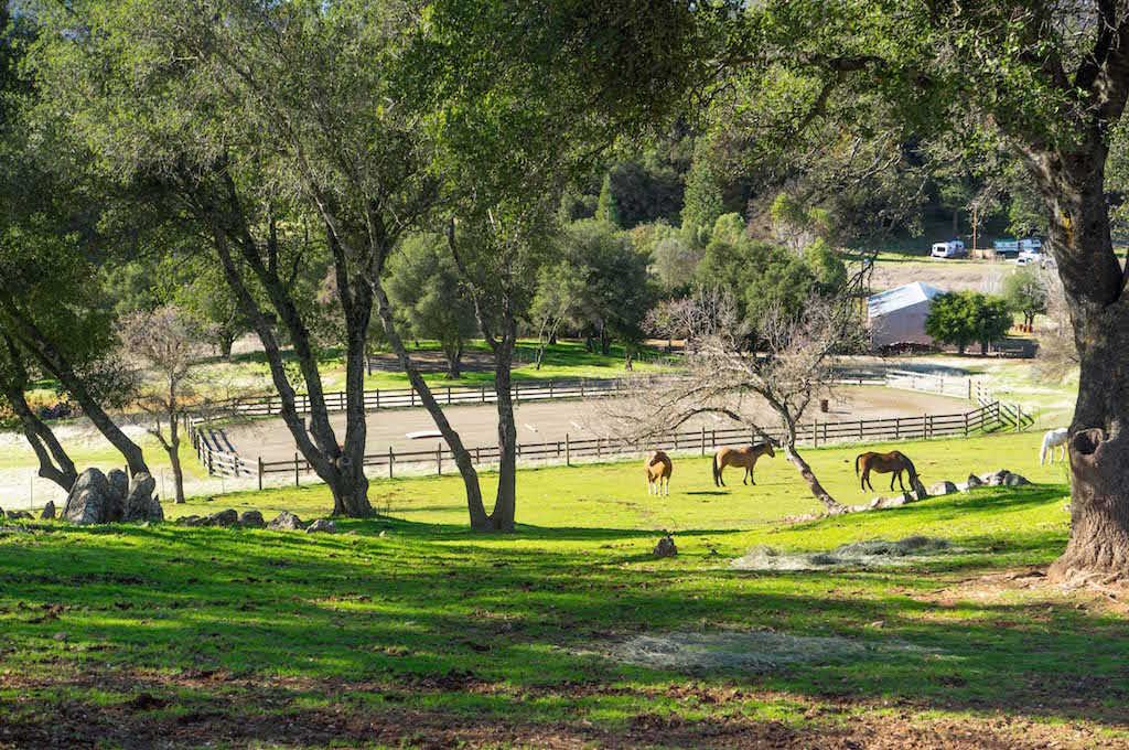 This equestrian property is the product of a 24 year labor of love. The 3000 square foot main residence has been updated over the years with an eye on functionality and an attention to detail as evidenced by the custom granite counter tops, high end appliances, large spaces for entertainment, and the use of wood paneling and stone masonry to create an elegant and rustic feel. There is a comfortable 1100 square foot guest-house over an extra deep 3 bay garage. The 18 stall BarnMaster barn, two 60' round pens, original 72' x 175' sand riding arena, new 83' x 182' sand riding arena with 5 rail pipe fence and 15' wide perimeter sand track and hay barn are ideal facilities for a professional horse trainer, breeder, or the serious equestrian family. With 60 acres of grazing pasture dotted with oak trees, the ranch can also support a cow-calf operation. The 80 GPM well provides an abundance of water for the house, all the animals, and the extensive landscaping and garden areas.
