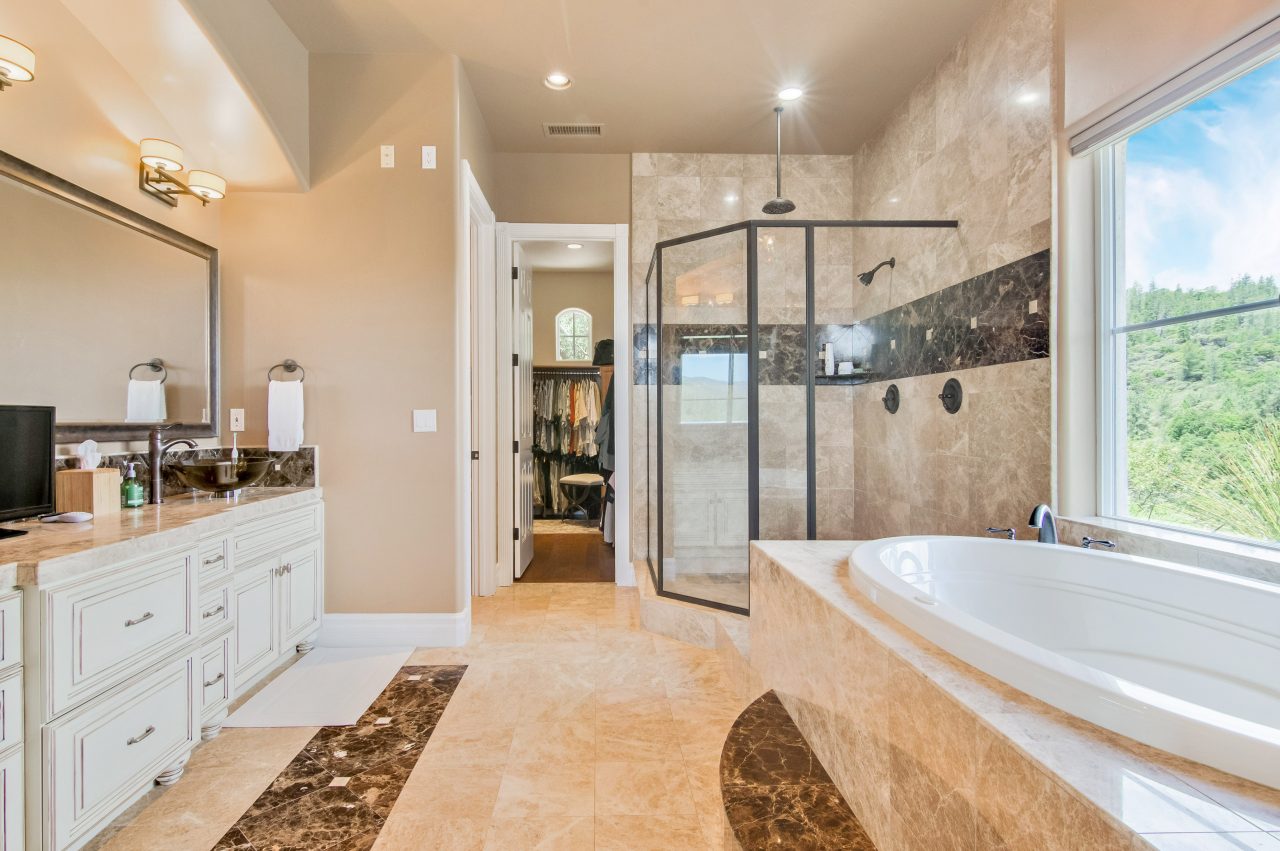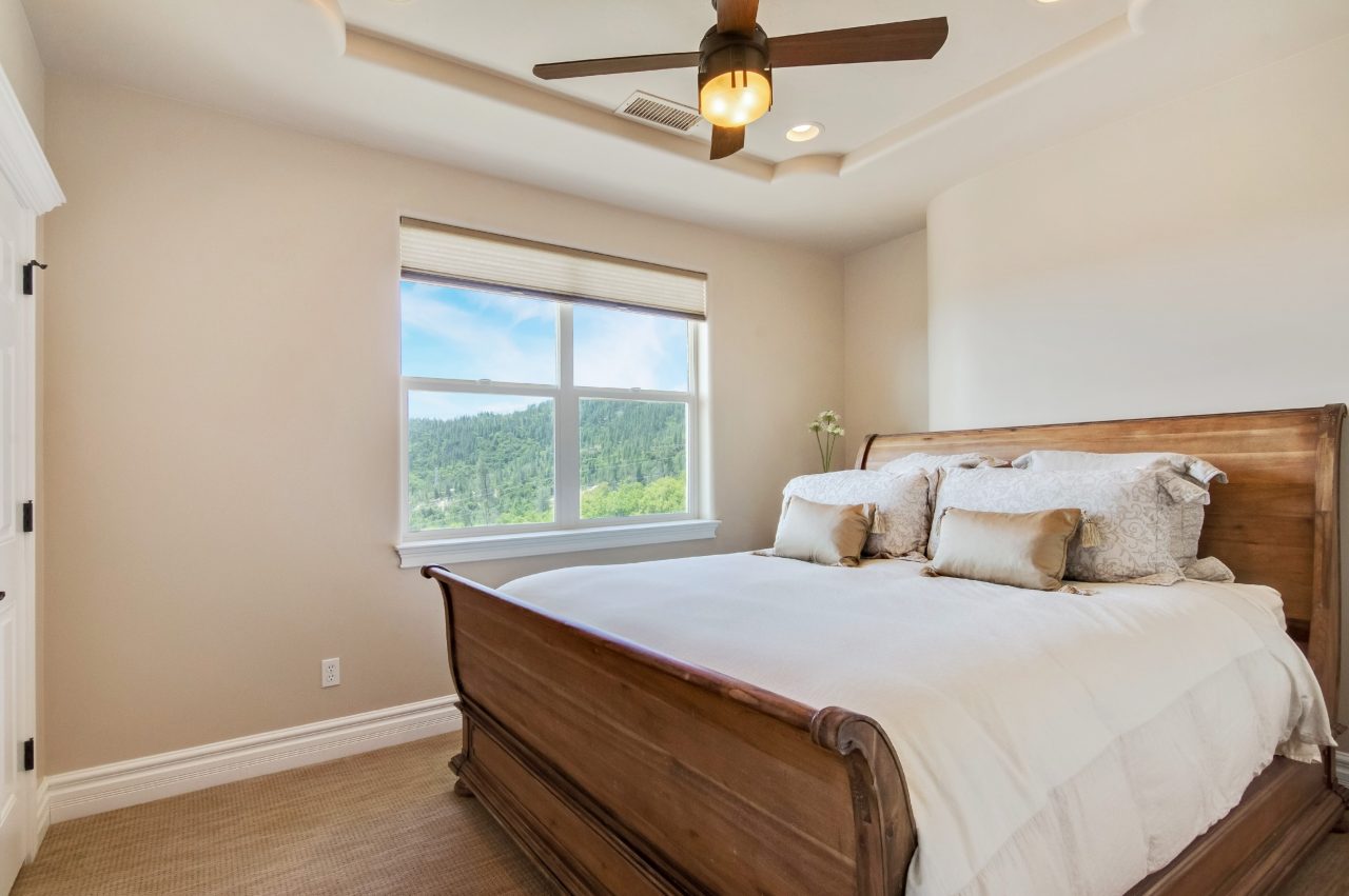 Welcome to a secluded and stunning home with commanding day and night views of the City of Redding and the Sacramento Valley below, and Mt. Lassen and the Cascade range to the east. This proud 4,530 sq.ft. two-story home in the Tuscan architectural style is surrounded by tailored gardens, extensive patios, a vanishing-edge swimming pool, and a poolside barbecue area perfect for entertaining family and friends. Inside, vaulted spaces, walls of windows, sophisticated finishes and subdued colors contribute to a feeling of comfortable elegance. Downstairs, besides a living room, family room, dining area, kitchen, wet bar, and office, there is a spacious Master Bedroom suite with walk-through closet. Upstairs are two guest rooms with individual baths and a second large den/library/office. The attached garage has spaces for 4 cars, and there is also an additional vaulted bonus space with its own entrance that could serve as a granny flat or accommodate 2 additional cars, a boat, or serve as a workshop. The security-gated property even includes a heliport and shooting range, among other distinctive amenities. Walk or ride your bike to Whiskeytown Lake Recreation Area for swimming, fishing, sailing, kayaking, or to take advantage of the miles of beautiful hiking trails!