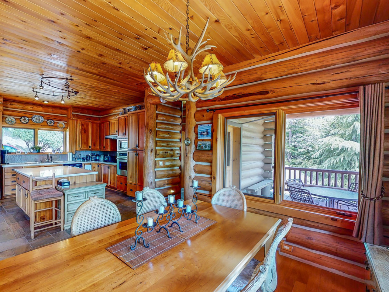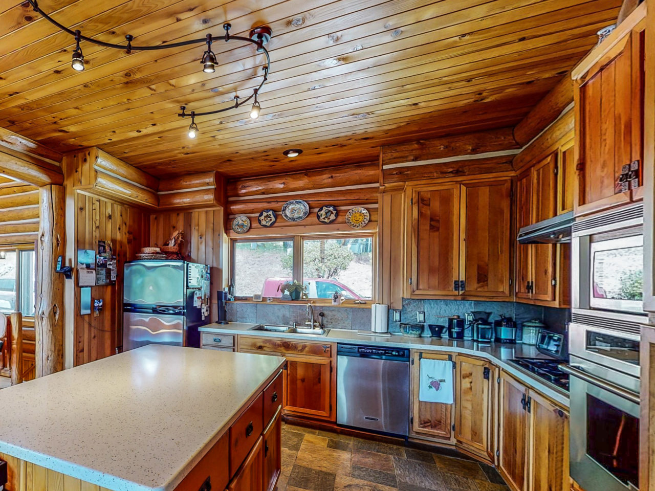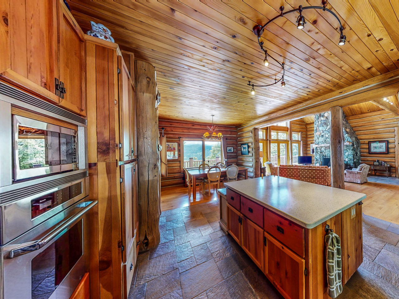 The Montana Style Log Home has finishing touches that will impress the most critical eye, with a focus on practicality. The main level is all you need; downstairs is convenient for guests or kids with a family room that has its own fireplace. The fireplace rockwork is outstanding!