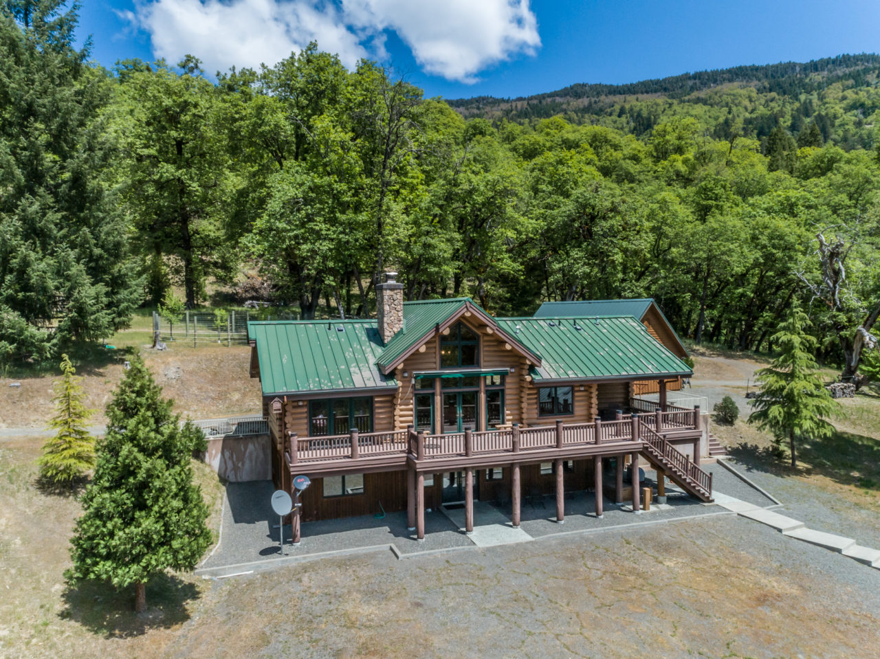 South Fork Mountain Ranch is located at the base of South Fork Mountain at about 3,000 elevation. The Majestic Log Home sits at the base of the 180 acres behind a locked gate. The property is mostly fenced and has amazing oak filled meadows supporting a plethora of wildlife.