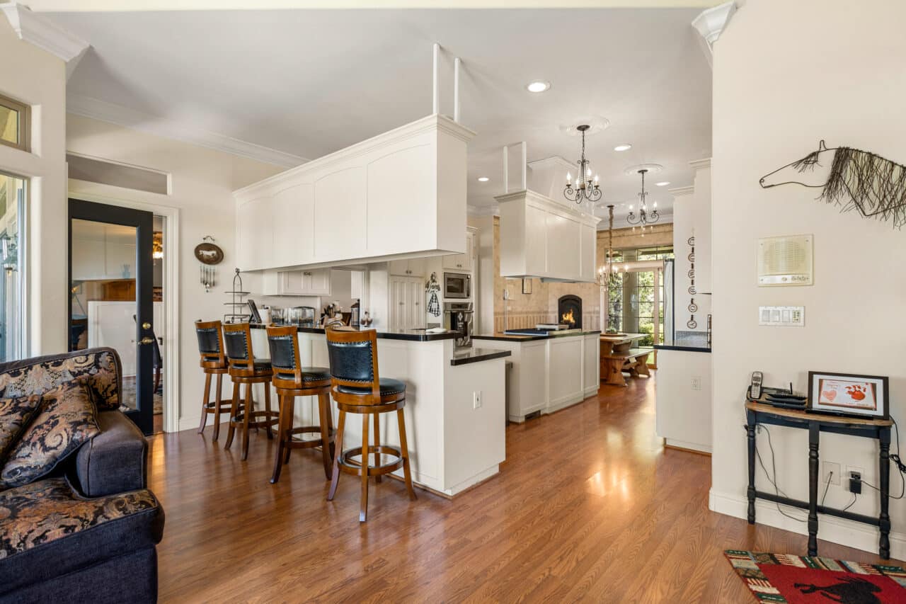 The Main Residence is a luxurious 4,250 square-foot home featuring four bedrooms and three bathrooms, a gourmet kitchen, formal dining and living spaces, a wood paneled office, five fireplaces, and a covered patio with stunning sunset views year-round. The property is aptly named Sunset Ranch, as you can witness the sun setting 23.5 degrees north of the equator in summer and 23.5 degrees south in winter.