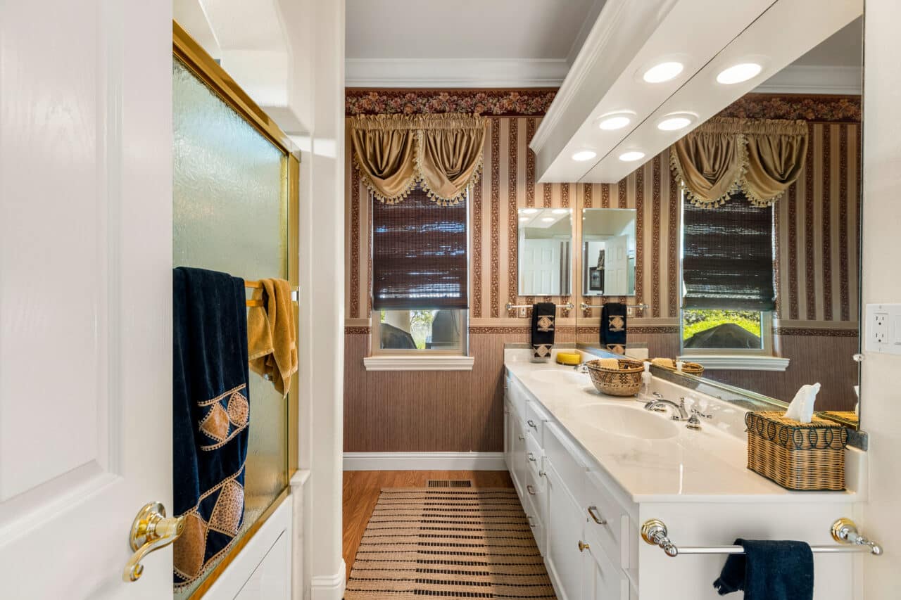Below the main house lies a gardener’s paradise. The deer-fenced garden boasts a garden shed with a large covered potting area, raised planting beds, and an automated irrigation system that also waters the landscaped gardens in front of the home.