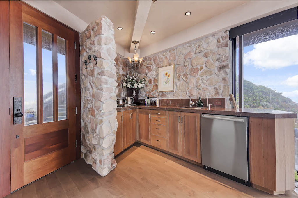 The Glass House is a jewel. The one bedroom, one bath, stone and glass house was remodeled with the finest finishes, never intended for resale. The house has three decks, the ultimate custom stone hot tub within salt spray of ocean waves, with the best ocean views in the world. A huge fireplace is the focal point of the cozy lower living room, floor to ceiling Starphire glass affords amazing views of crashing waves, whales, seals, seabirds, and sunsets over the Pacific. You must "sea" it to believe it!