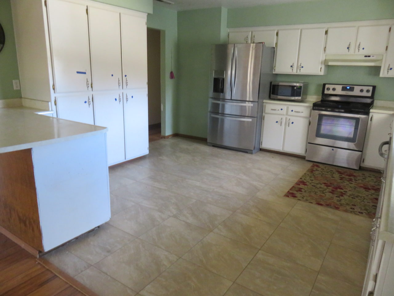 •  Open country kitchen with stainless appliances. Lots of counter space and cabinets. Large tile flooring.