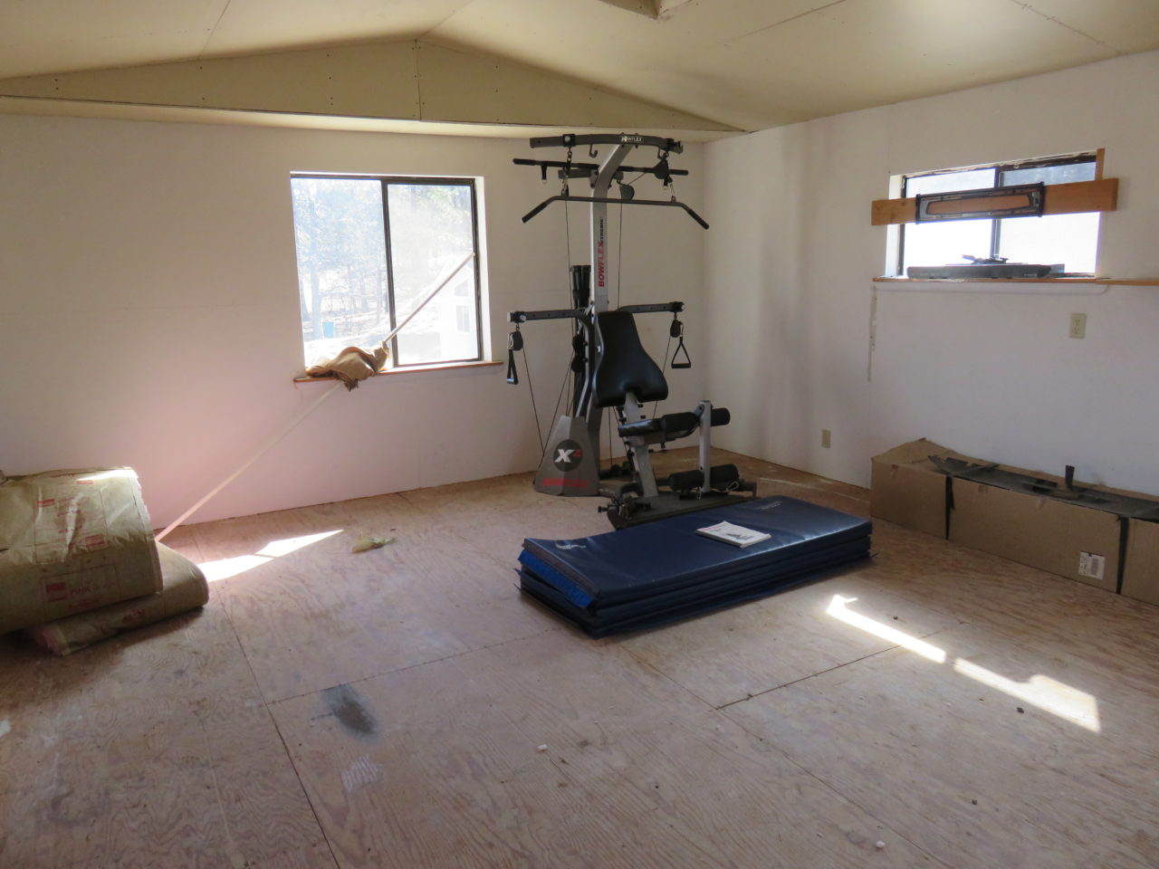 • Three bay garage/shop has concrete floors, work bench and upstairs rec room. Large concrete apron in front is perfect for basketball court!