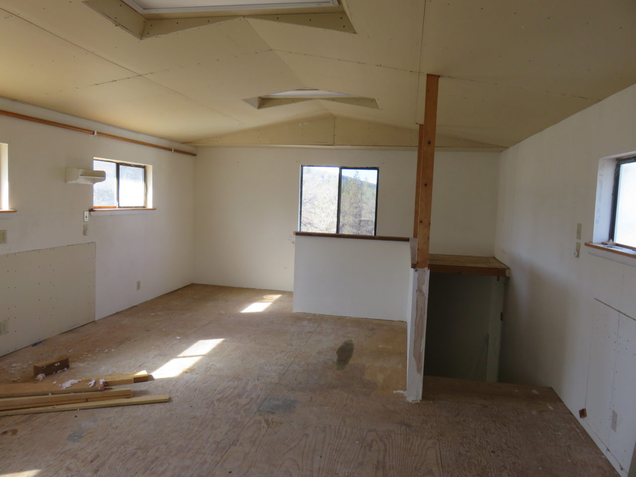 • Wood stove on brick hearth plus monitor heater in living area with vaulted wood ceiling.