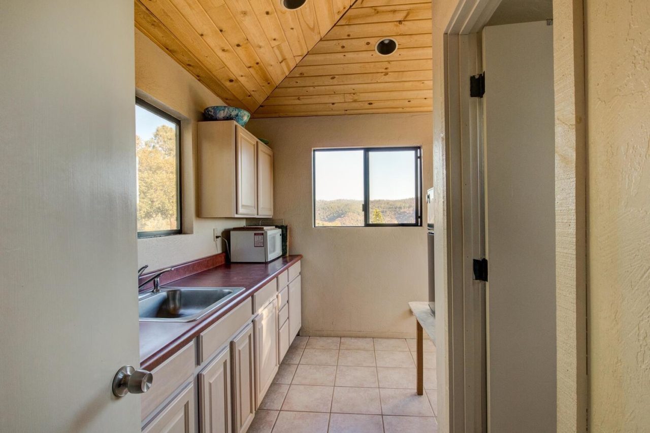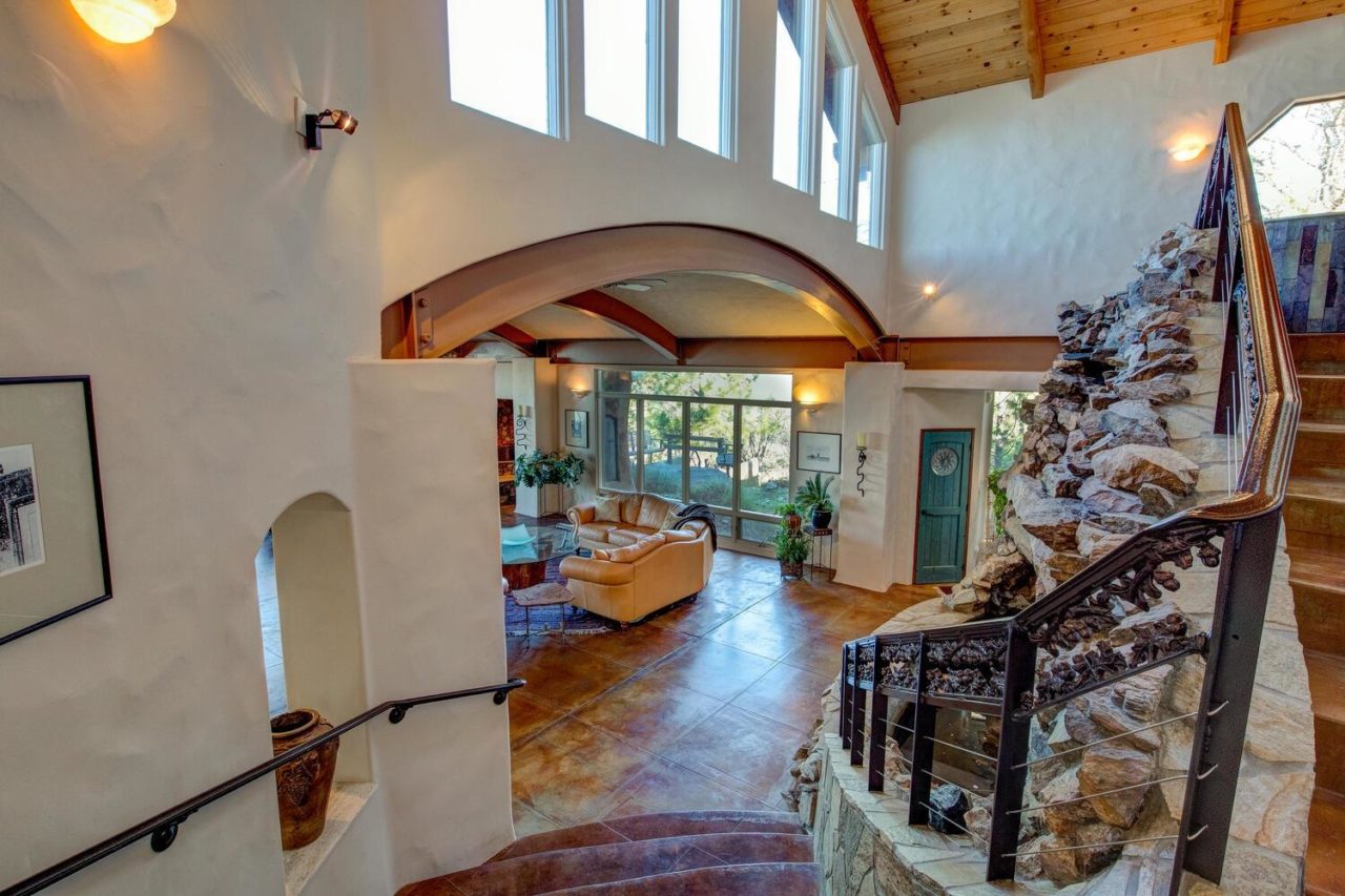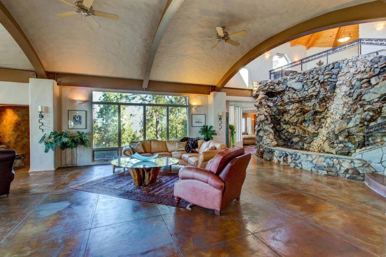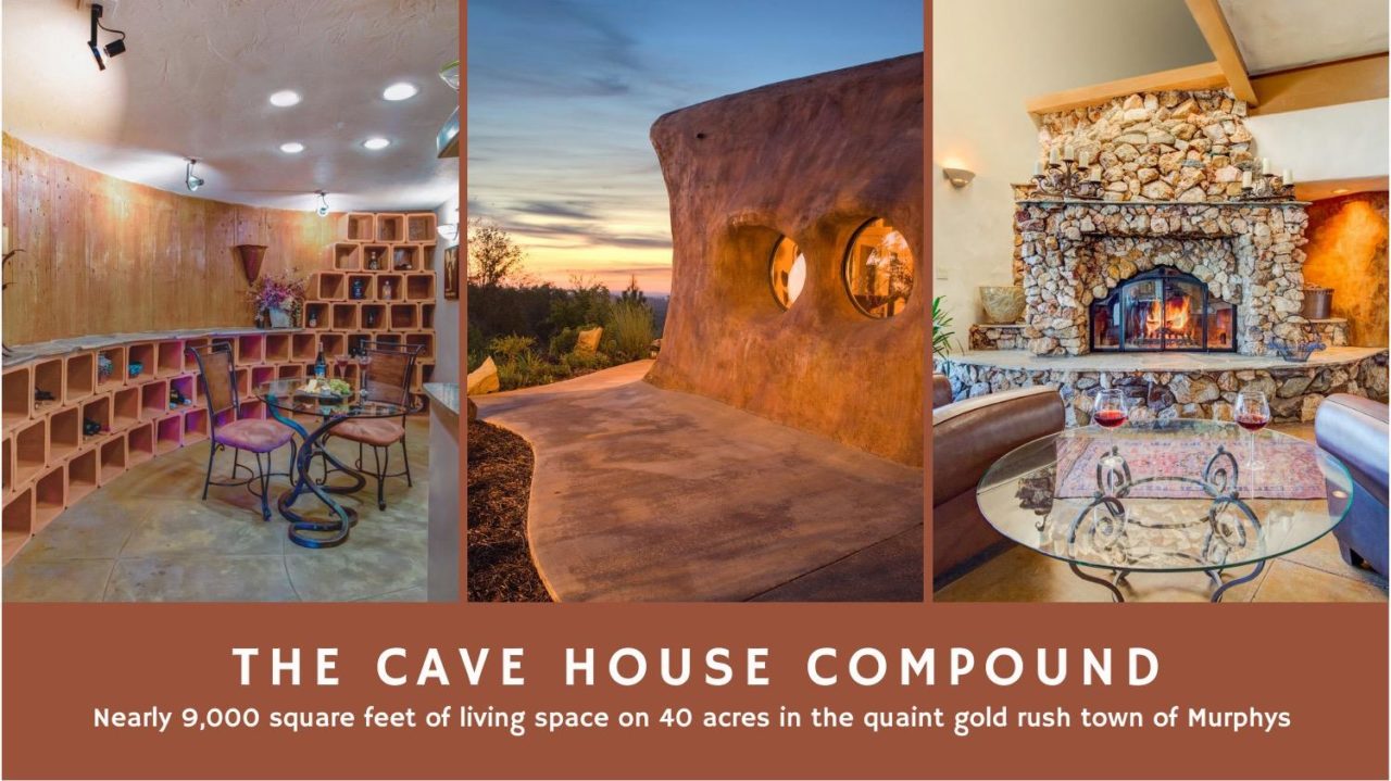The Querencia is a true California Gem. Sitting on 40 incredible acres, situated in Calaveras County, just 4 miles from the vibrant town of Murphys--a hamlet rich in gold rush history. Views, views, views...this estate is locally known as the “Cave House'' because of its award-winning, custom distinct architecture. Winner of the AIA design award, Querencia was featured on HGTV's Dream Builders. Top shelf improvements include an 8646 +/- SF main building, which is meant to be part of the landscape. It features a huge great room, media room, 4 large suites, and a Caretakers House, all interconnected. There is also a separate Library/Guest House and a Small Cabin retreat. The Cave House property has a total of 7 bedrooms, 9 bathrooms, a hidden wine cellar, and several kitchens, including a fully equipped commercial kitchen and an outdoor kitchen with a pizza oven... The list goes on. Making this a great spot for corporate retreats, VRBO, Airbnb, or a family compound. Other features include a 2000 sqft shop and plenty of room for RV hook-ups.