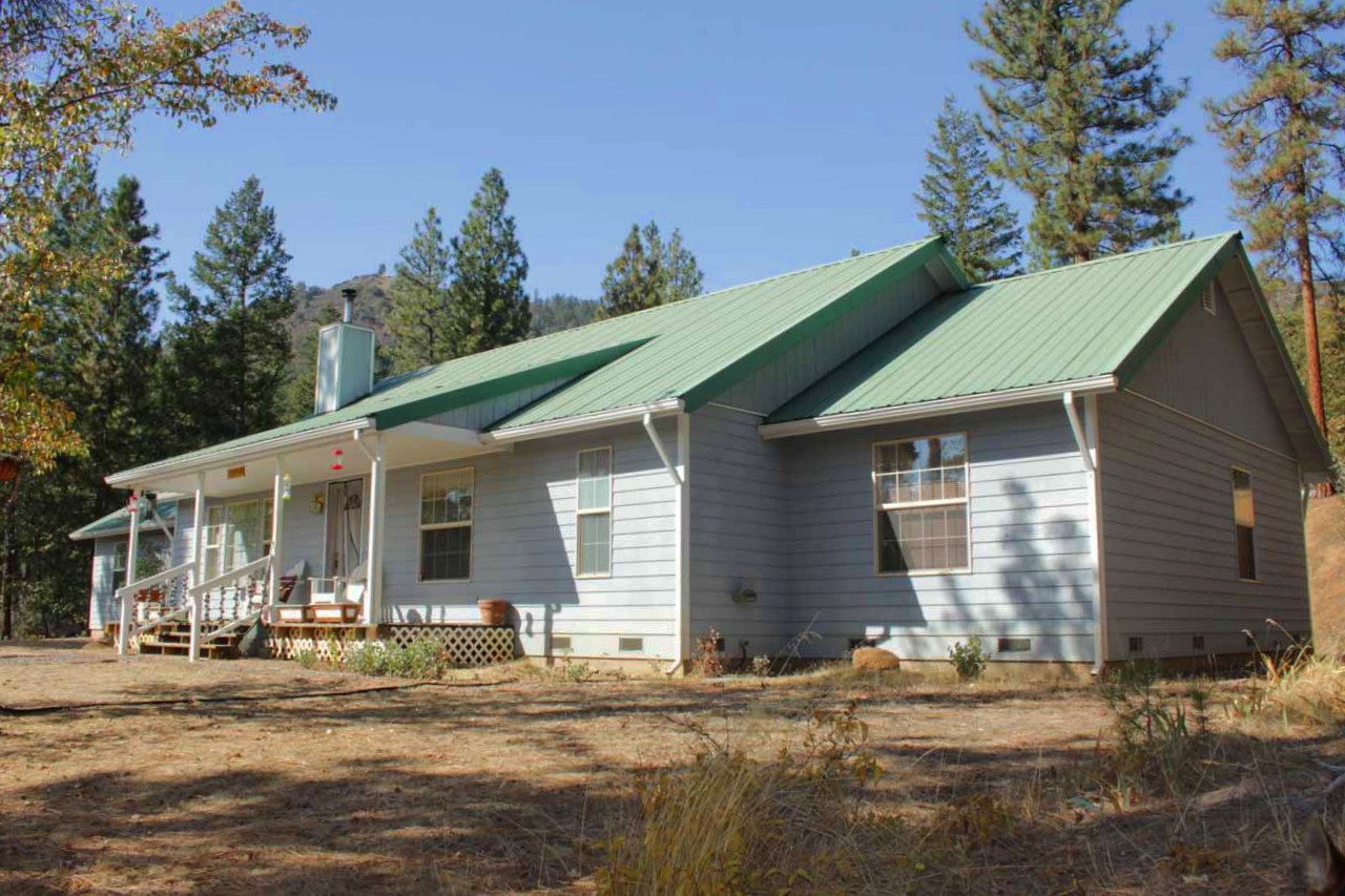 Country Living! 36+ acres with 1685 sf three bedroom, two bath home! Open floor plan with vaulted ceilings, pretty wooded views through the windows, and a nice master bedroom with walk-in closet. Needs new interior paint and carpet, but with a little TLC, would be charming country home. There is a covered enclosed screen porch between the house and the garage, which has workbenches and attic storage. There are several sheds for additional storage. The gently sloping land is mostly tree covered, with filtered views of the Marble Mountains and other surrounding hills, and you'll see blacktail deer and other wildlife. Even though you’re in the country, there is cell phone reception and high speed internet access available.
