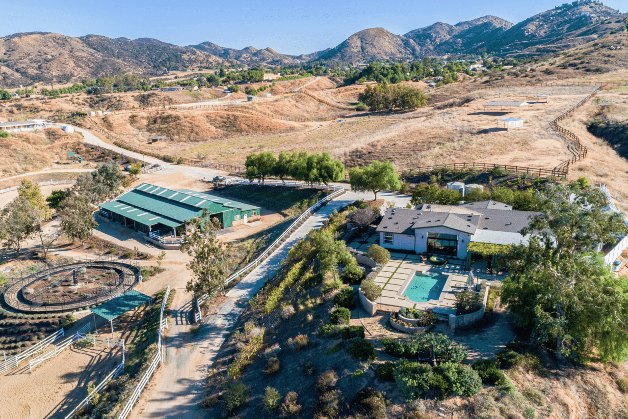 Equestrian Dream! Best in Class with numerous turn-out areas, corrals, barns, and automated hot walker (negotiable). Currently breeds and shows Clydesdales. One property with two parcels- APN 471-070-035 & 471-070-046. There is a beautiful 3,106 square feet home with four bedrooms and three baths that sits on 10.27 acres with the main equestrian headquarters, and there is a separate lot with 25.37 acres with upper and lower ranches with 9+ turn-out and boarding areas. All areas are fenced. The Arena is groomed and ready for training, and events. Major upgrades everywhere. Room for goats, dogs, cats and chickens. This is a one-of-a-kind equestrian estate in Riverside County, near San Bernardino and only 50 miles from Downtown Los Angeles. This ranch has it all with views of the mountains and valley. Your horses will love you. This is a first and class equestrian facility on a total of 35.64 acres. It has both rural lifestyle and is close to all services. There is room to grow. This equestrian estate offers all the amenities for the enthusiast or hobbyist. The property is cross-fenced and has a lighted 120' x 300' outdoor arena, a 10-stall barn, paddocks, and a 1-mile riding course.