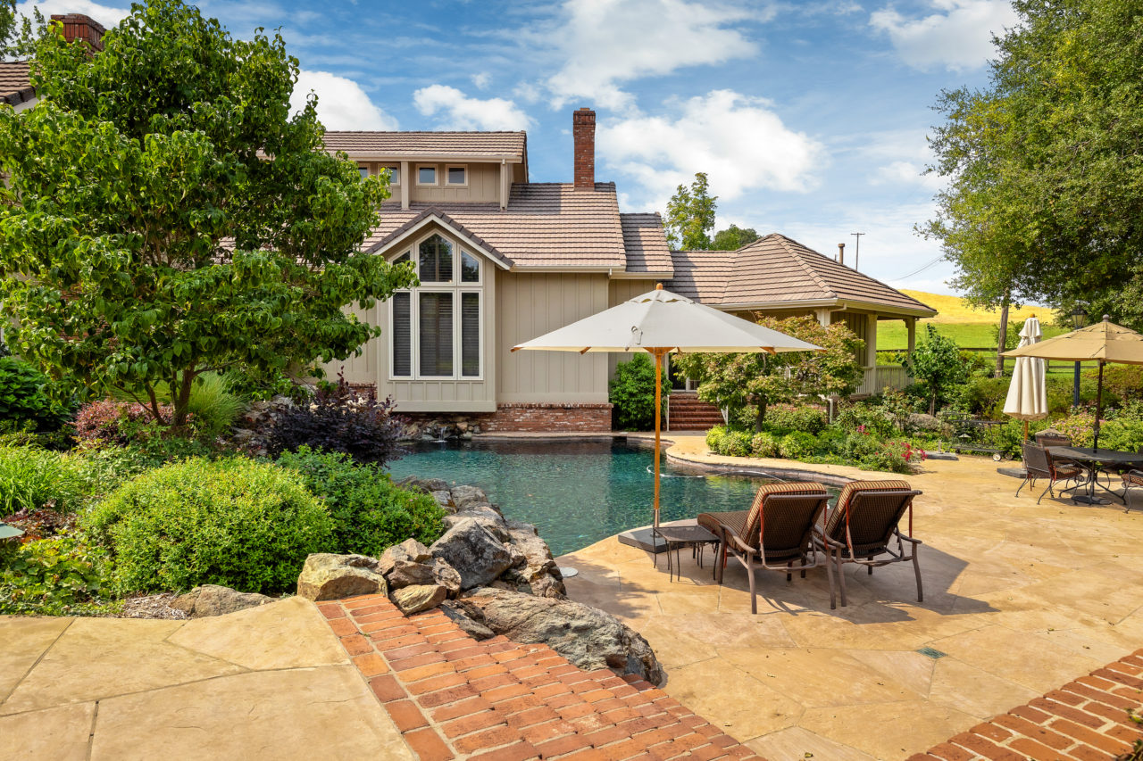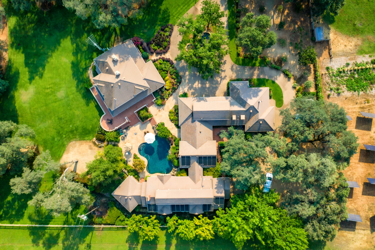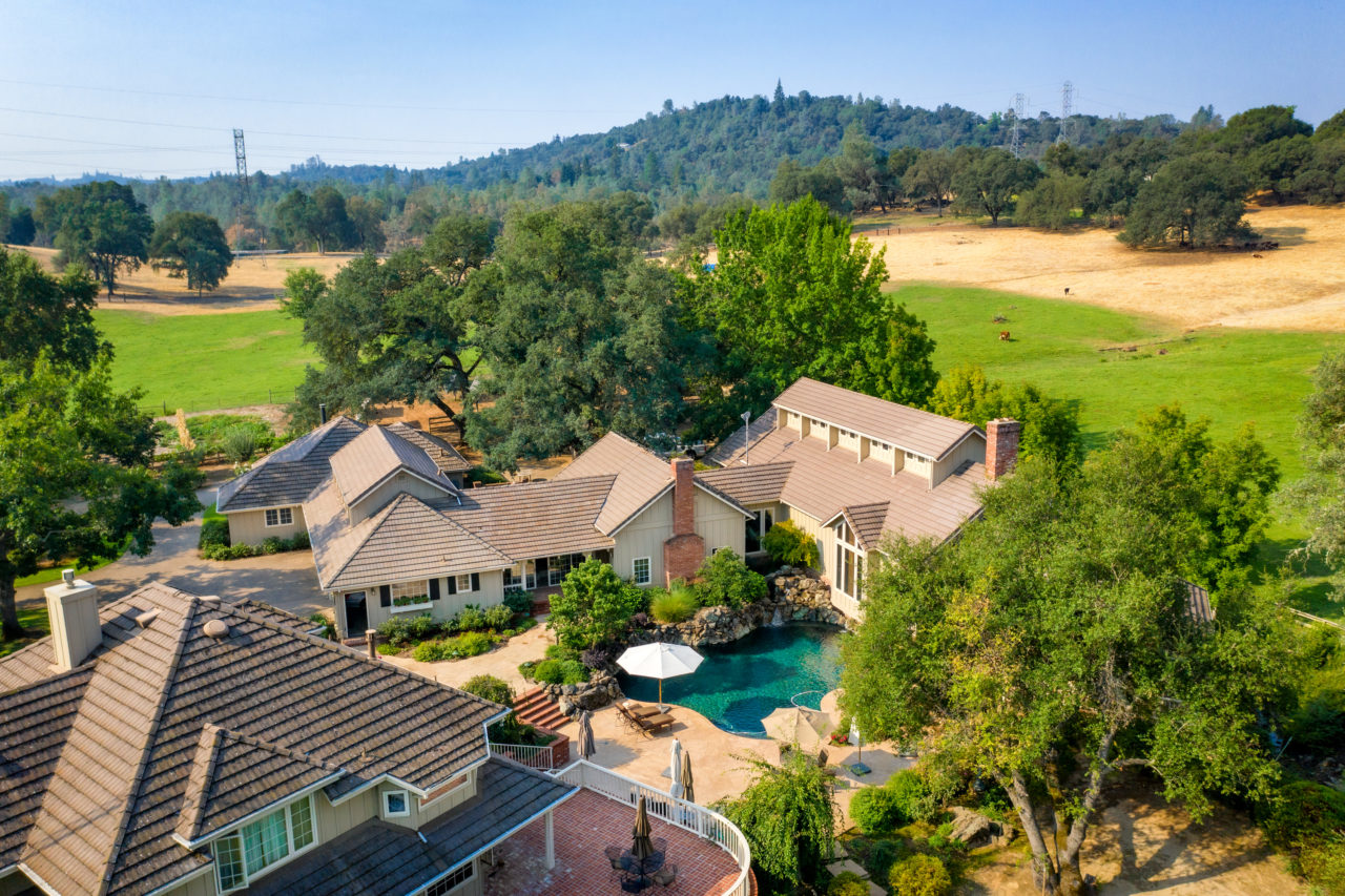 Welcome to Villa Cielo Ranch, a stunning, private, and secure compound on 76+ acres mere minutes from Highway 50, downtown Placerville, and nearby El Dorado Hills.  Enter through an impressive stone and iron front gate and make your way up the drive to the sparkling stone fountains welcoming you home.  The complex includes a 3770 SF luxury residence, a 3 bedroom guest cottage, an Ahwahnee Lodge with rock-wall, kitchen, bar, & 2 fireplaces (could be used as a wedding venue, banquet hall, or corporate retreat), an indoor Spa room, and a gymnasium, all surrounding a Pebble Tech pool with rock waterfall, flagstone patios, and multiple decks, creating a private country club feel.  Fenced and cross-fenced, the outbuildings include a wooden barn with cement slab floor and tractor overhang,  and 40 Acres of irrigated pasture.  There is a year-round pond fed by Indian Creek, which provides water rights to 130 Acre-Feet.  Cattle lease is year-round.  There is an owned Solar Array, next to the large vegetable gardens and fruit tree orchard.